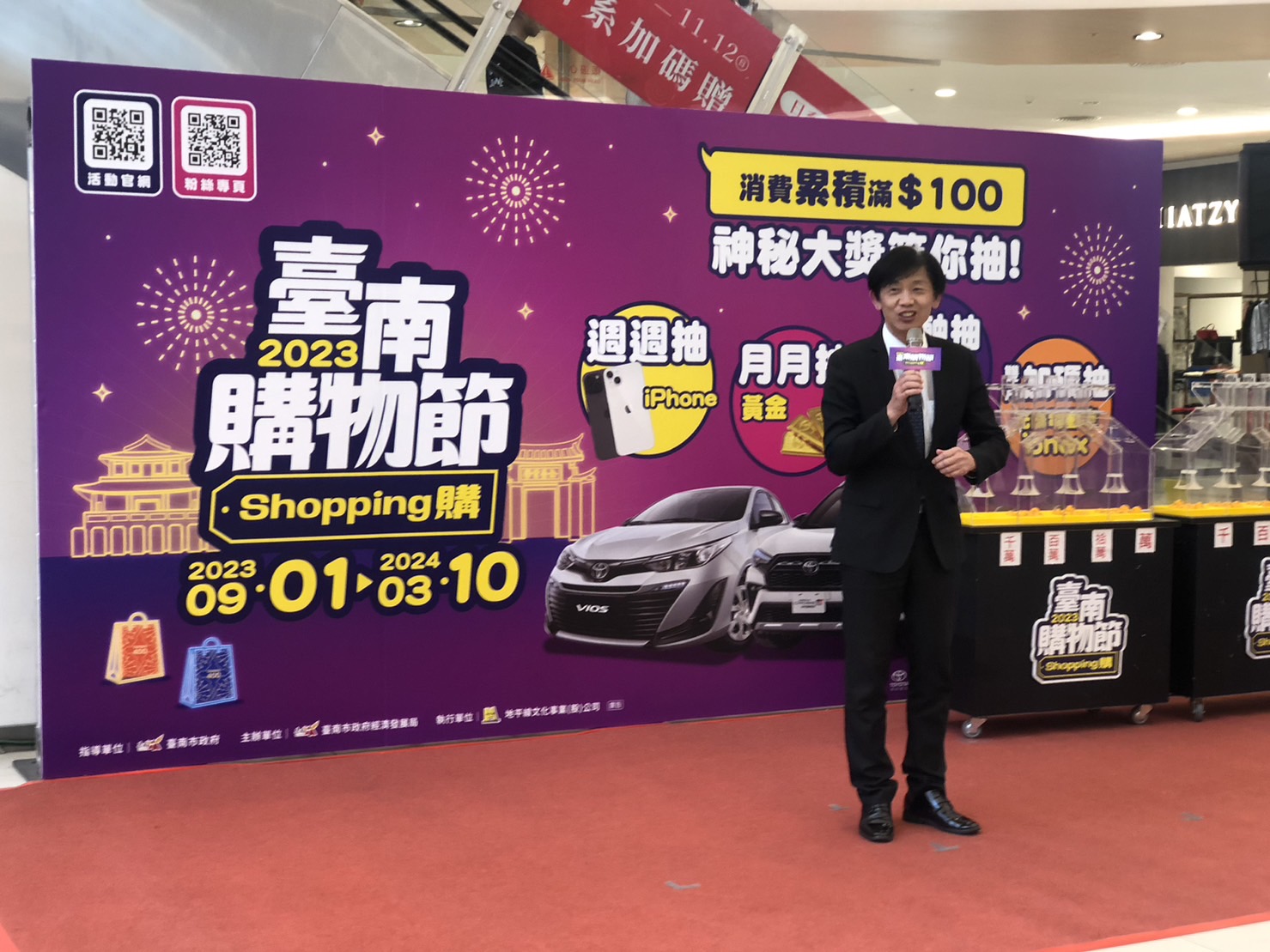 經濟發展局局長林榮川表示,2023臺南購物節消費登錄抽大獎,不定期會有驚喜加碼抽,像是「雲端shopping加碼抽」、「市民shopping專屬返現抽」、「臺南購物節X交通局電動車加碼抽」有登錄就有中獎的機會,全民一起在臺南Shopping購,抽大獎!