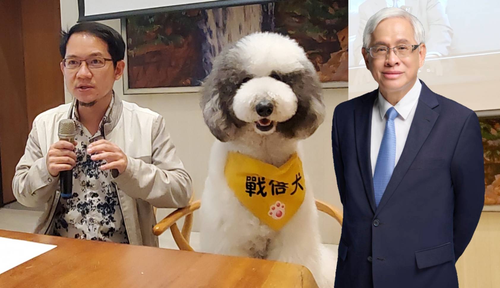「戰倍犬」Sammy成為媒體聯誼會的主角。(立委參選人郭倍宏博士辦公室提供)