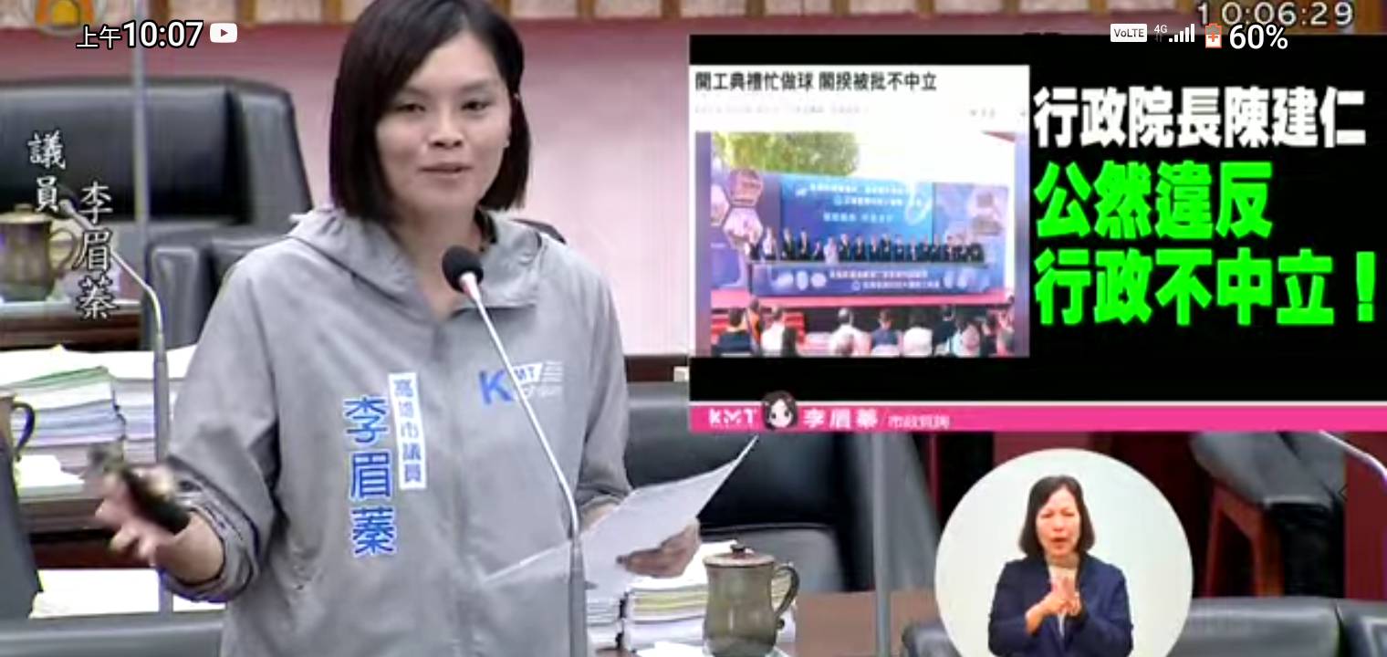 高市議員李眉蓁批評民進黨政府行政不中立。(記者翻攝)
