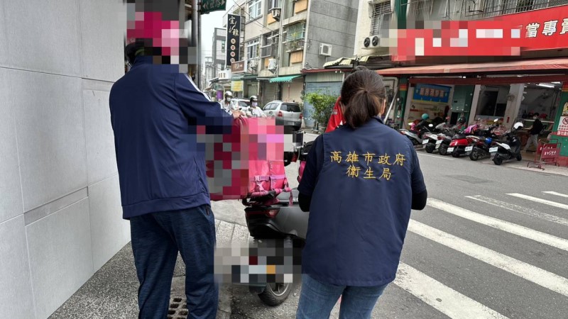 抽查外送服務員。 (高雄市衛生局提供)
