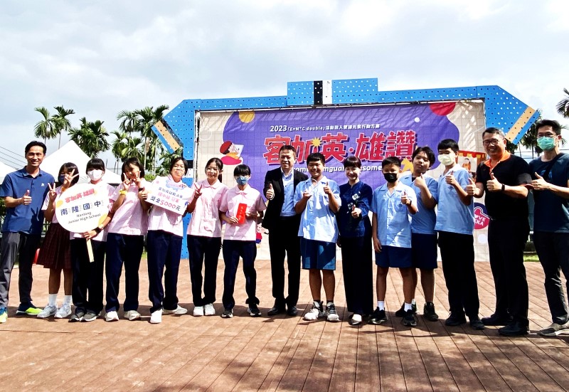 高市客委會在美濃客文館辦理「客加英‧雄讚」校園雙語闖關市集,美濃、杉林12所國中、小學近900位師生參與。 (黃山高攝)