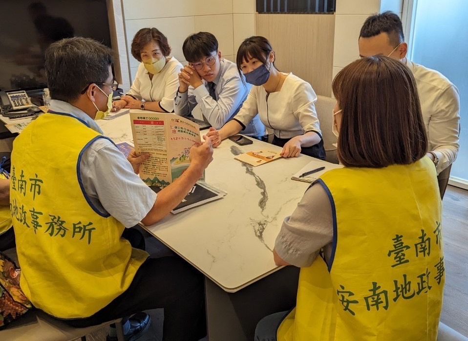 安南區開工數111年為3745戶,112年至10月為1537戶;建物第一次移轉登記111年為2349戶,112年至10月為1538戶,經分析安南區在111、112年透天與大樓開工數及建物第一次移轉登記,除112年大樓開工數居全市各區第3位外,其餘皆為全市之最,顯示安南區為交易熱絡區。安南地政事務所為了讓轄區內相關業者能夠掌握新制的法令規定,於11月13日上午由周彥廷主任帶隊前往案場進行宣導說明。