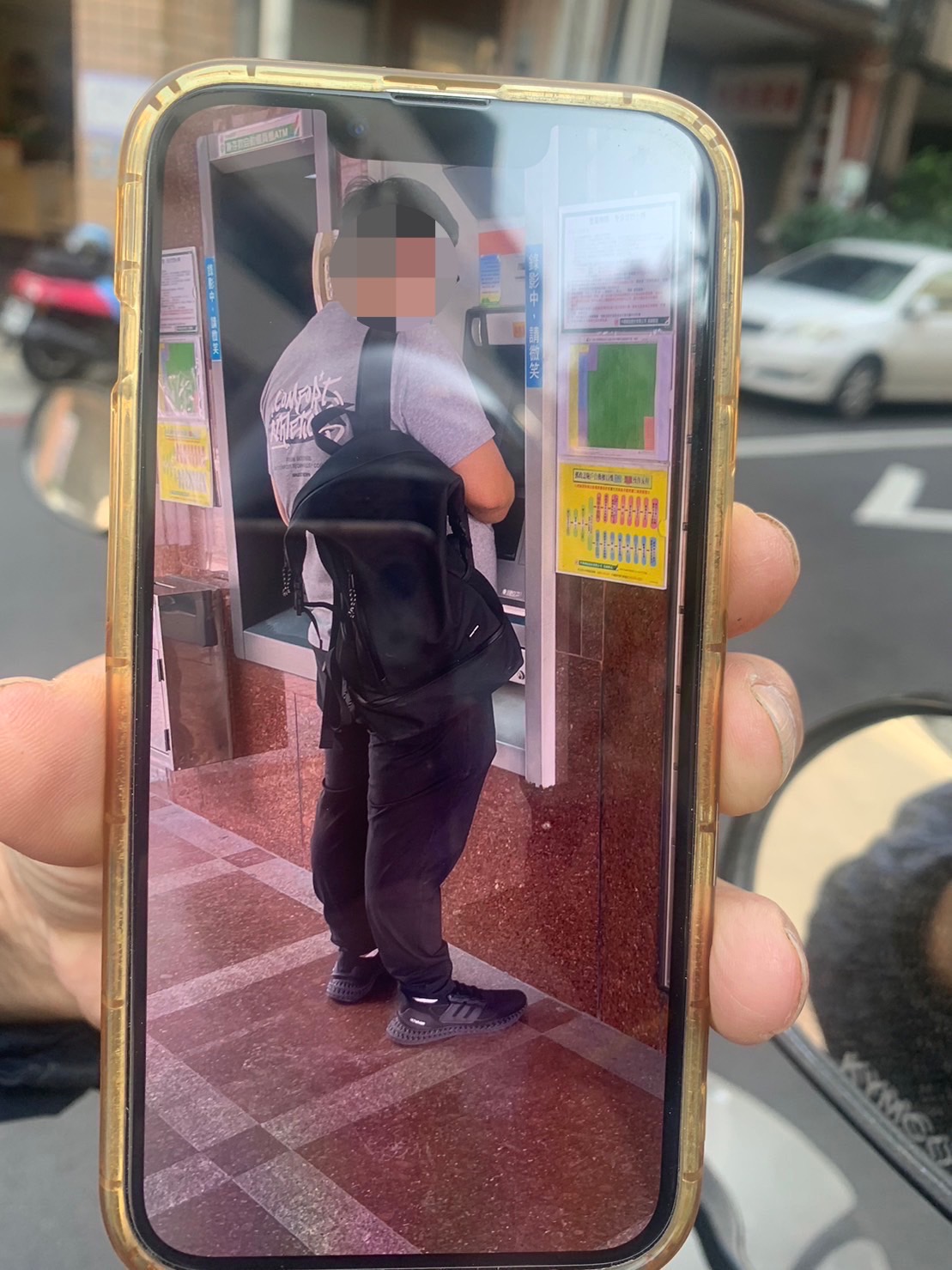 警方指出,72歲陳姓民眾來電報案稱其於郵局提款機排隊刷存款簿時,見一名男子反覆操作提款機且神色慌張,疑似是詐欺車手正在提領贓款,惟員警抵達現場時,提款男子已離去,所幸陳男當時有拍下男子的穿著特徵,員警得知後立即至轄內各處超商、金融機構巡視。
