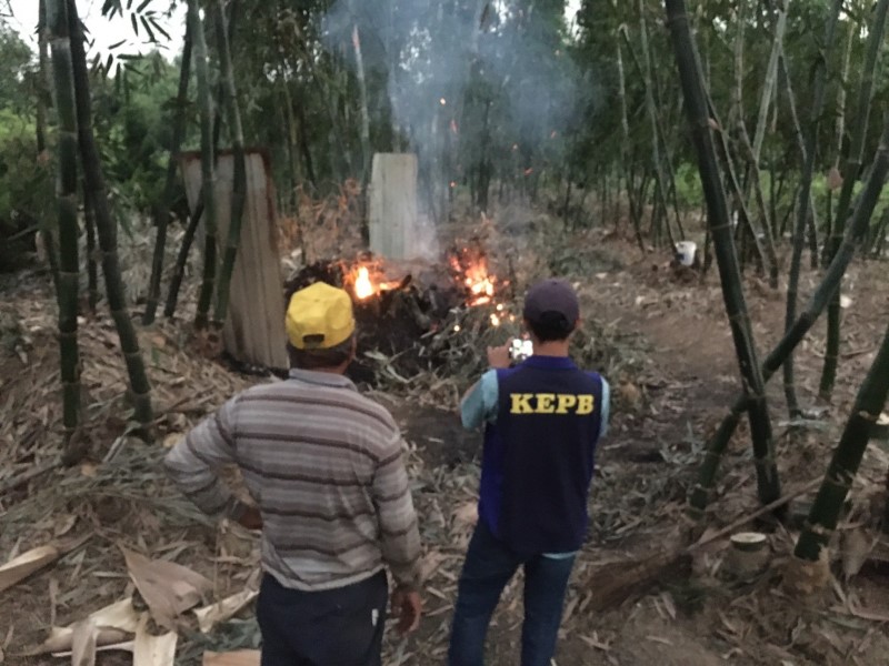 稽查人員現場查獲露天燃燒情形。(高市府環保局提供)