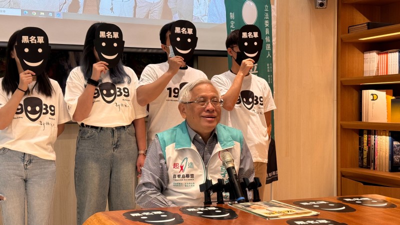 郭倍宏競選團隊今天還請了四位年青伙伴手持「黑名單」的面具,在郭倍宏博士發表感言時站在他的後方,象徵號召如今的年青人效法當年年青人站出來「挺他」的寓意深遠。(高雄市第六選區立委參選人郭倍宏博士競選總部提供)