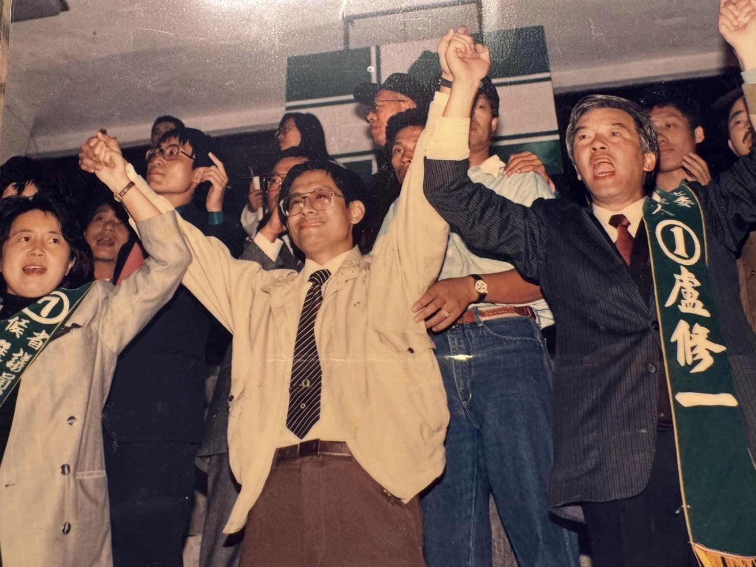 郭倍宏表示,為台灣民主運動,從青絲到白雪。(記者翻攝)