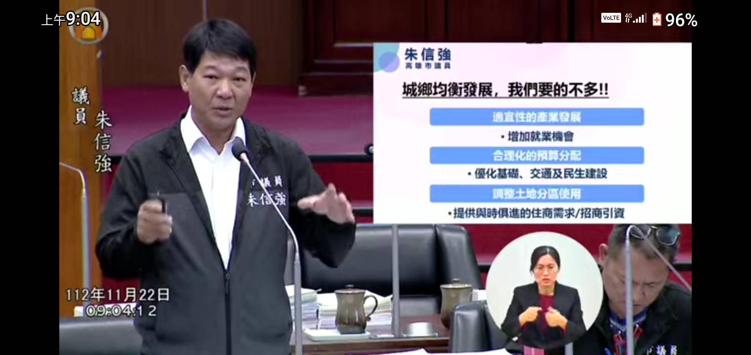 朱信強議員說,東高雄土地占全市三分之二,建樹卻不多,預算分配亦不足,農業人口下降,年輕人沒有就業機會,建議市府利用國土計畫機會檢視農地實際需求。