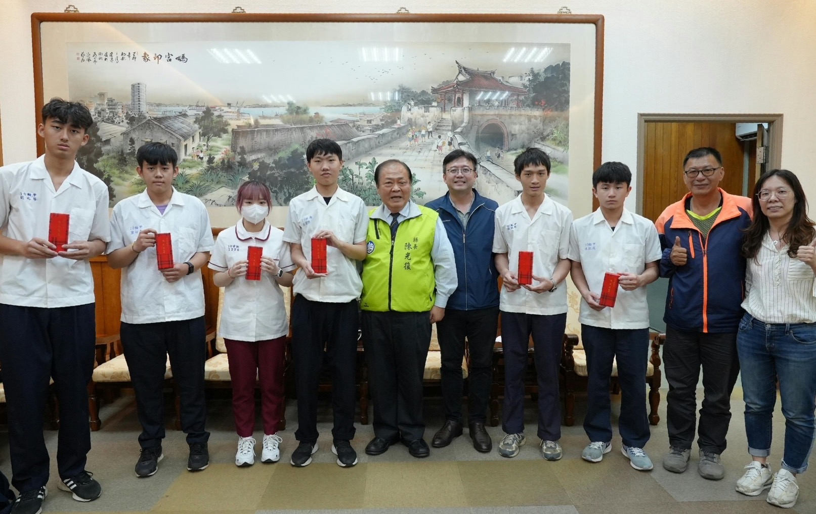 澎湖海事學生在今(112)年「全國海事水產類學生技藝競賽」中表現出色,榮獲多項獎項。縣長陳光復今(23)日於縣長室頒獎,以示鼓勵並激勵獲獎學生繼續追求卓越,在他們的專業領域持續深造,為社會貢獻力量。