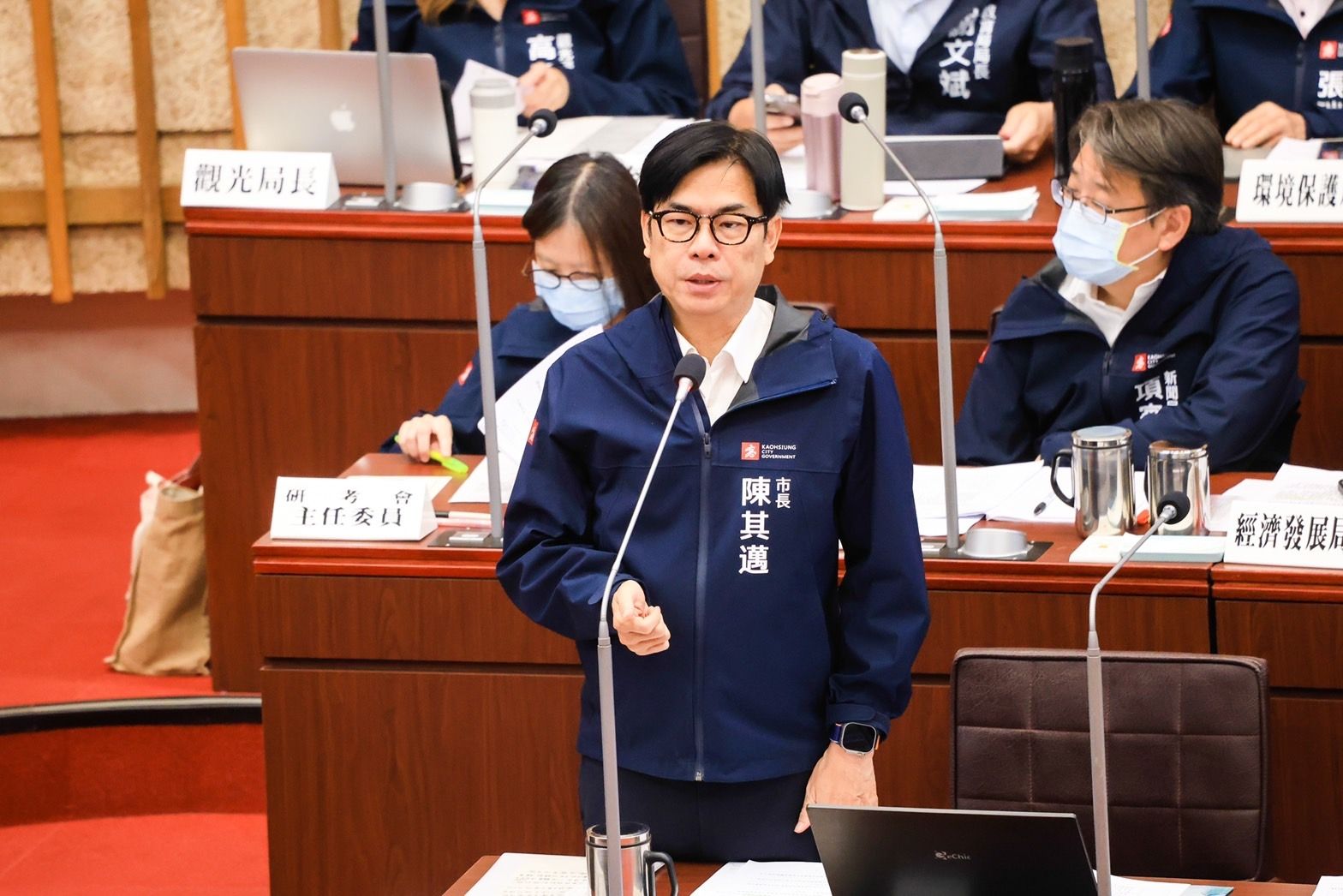 (記者吳冠賢報導)展望2024城市發展面向,高雄市長陳其邁今(27)日答詢表示,二大主軸包括數位轉型及淨零轉型,現階段鋼鐵石化產業面對碳關稅的挑戰,將逐步改善製程效率,提升整體環境永續;在數位轉型方面,加速高科技產業在高雄落地,形成穩定生態系,包括半導體產業、智慧城市應用服務等,從需求到設計、創新,到IC設計、晶圓製造、封裝測試等,一方面吸引新產業進入,一方面讓傳統鋼鐵石化產業及螺絲扣件等,更具競爭力。