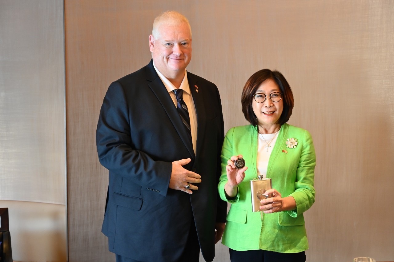 康裕成則分享,高雄是海洋城市,港市合一議題是議會相當關注的重點,期盼保羅‧伊凡斯(Paul Evans)眾議員分享美國經驗,作為高雄精進城市建設的參考;她進一步期盼將高雄與波特蘭市長達35年的姊妹情誼,擴大至奧勒岡州,建立穩固夥伴關係。