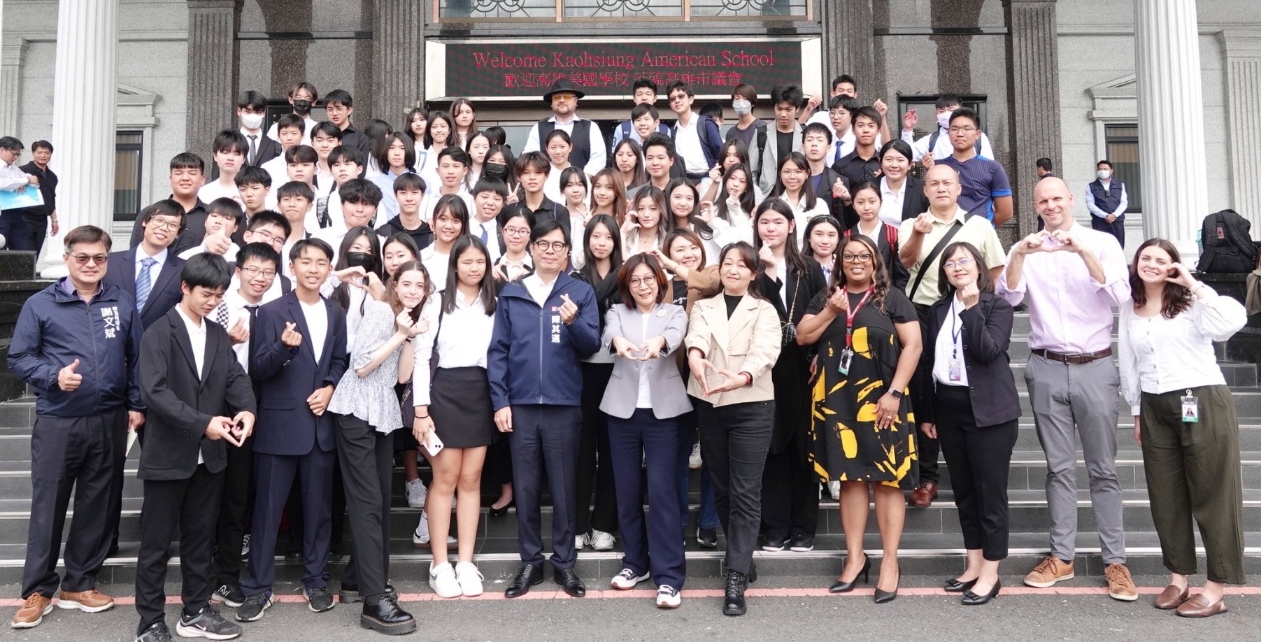 上午市政總質詢議程結束後,康議長偕同陳市長和美國學校師生交流合影、大玩自拍,受到師生們的熱烈歡迎和簇擁,場面熱鬧、歡呼聲不斷。陳其邁肯定美國學校師生走進高雄市最高民意殿堂,也感謝李雅芬議員從旁協助校方各項事務。