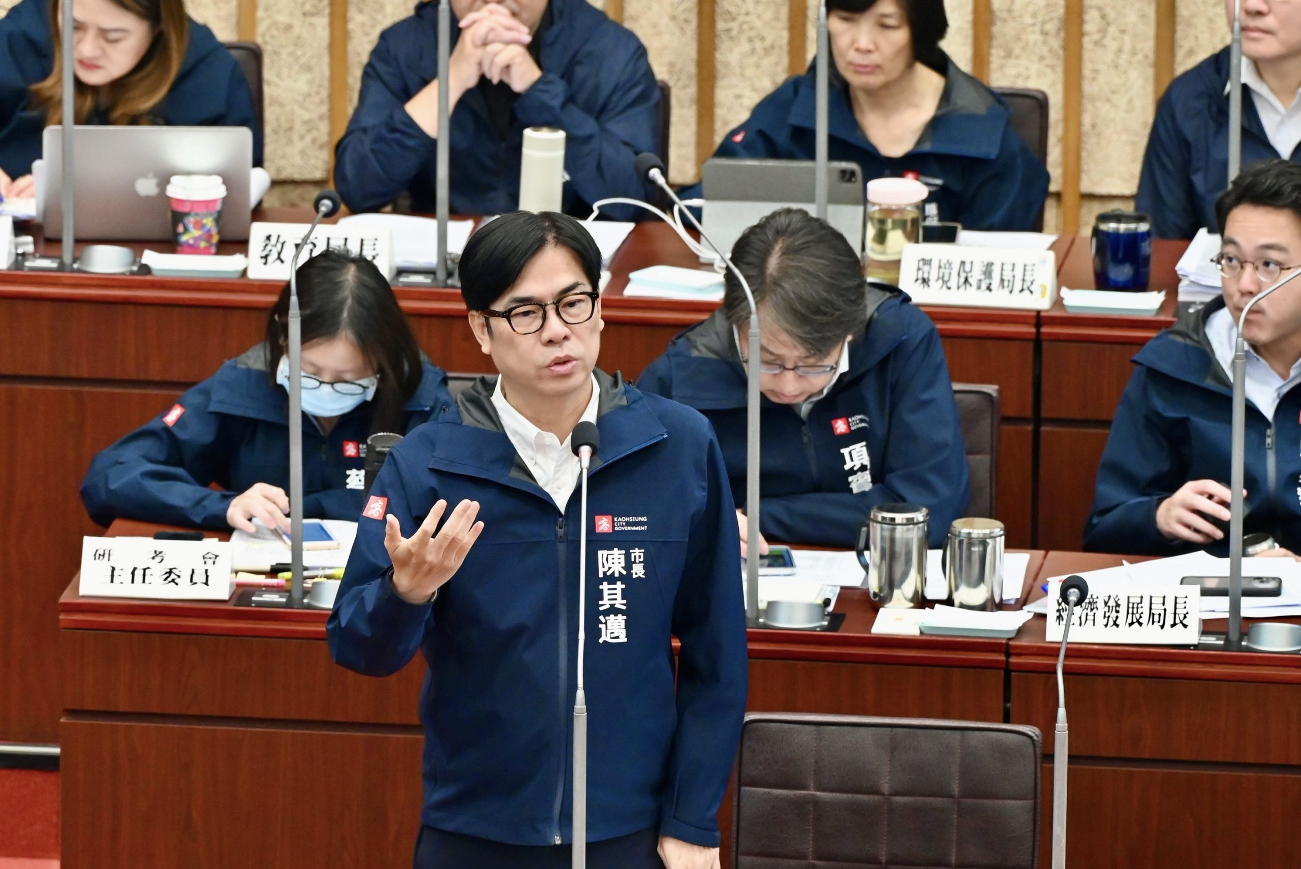 高雄市長陳其邁在市政總質詢。(高雄市政府提供)