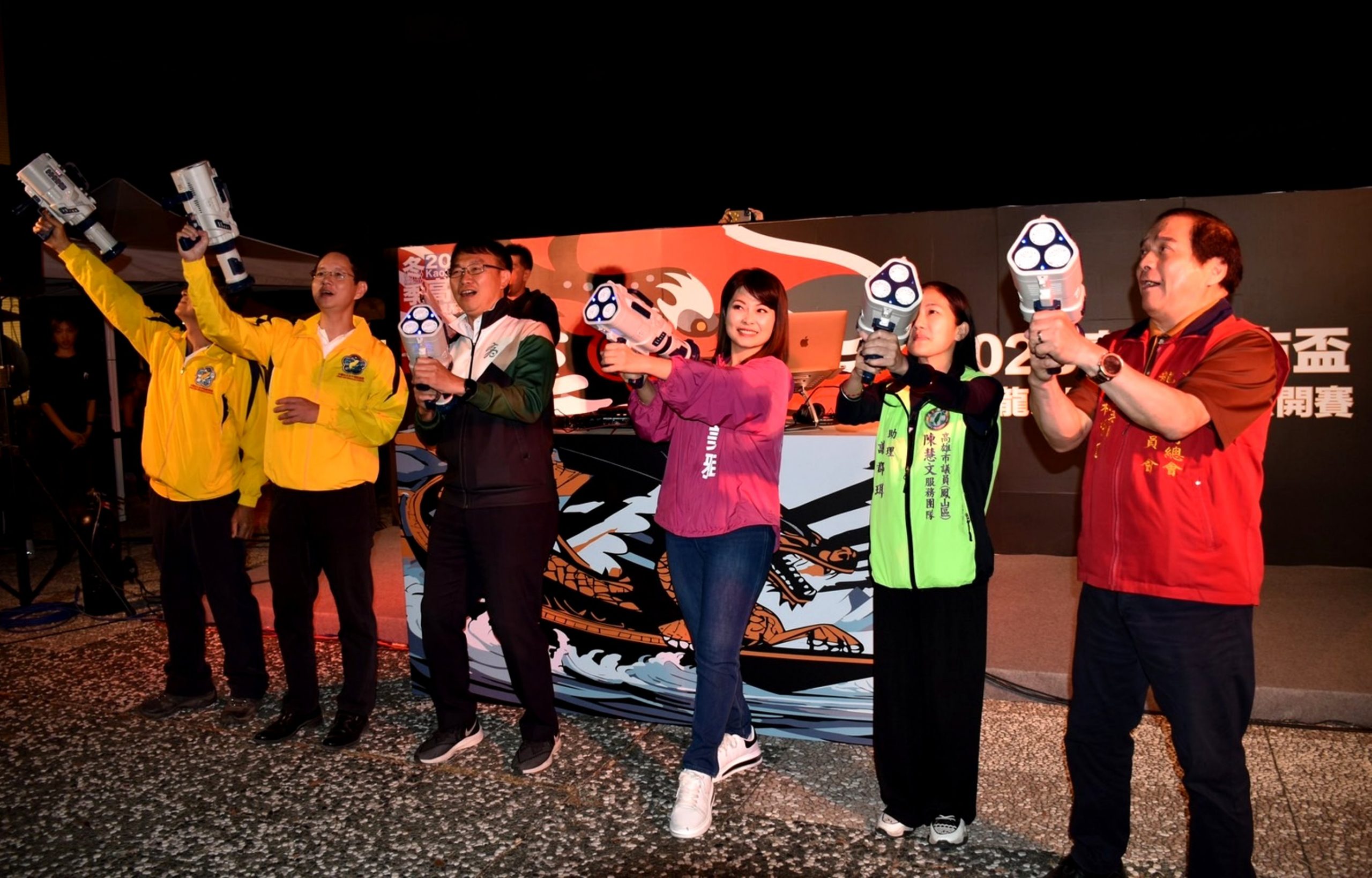 開幕出席貴賓有高雄市政府運動發展局局長侯尊堯、高雄市議員陳美雅、陳慧文議員服務處代表謝郡珥、高雄市體育總會龍舟委員會主委林明道及總幹事朱文祥、中華民國水中運動協會理事長劉文宏及榮譽理事長曾應鉅、鹽埕分局李紹榆分局長帶領團隊等貴賓出席。