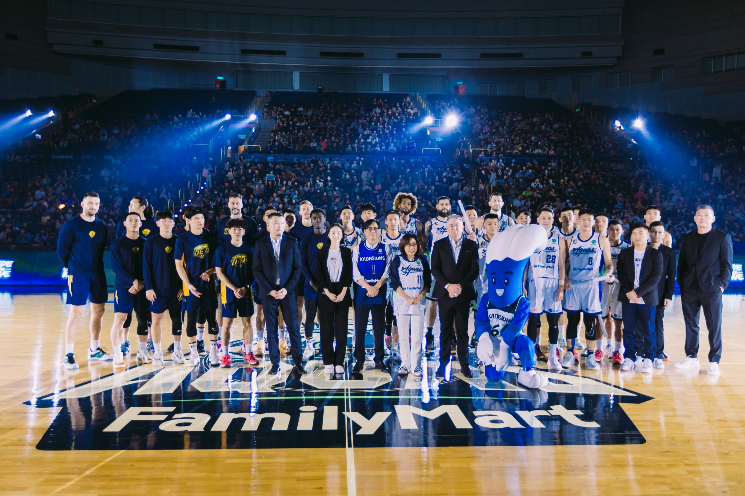 (記者林韋呈報導)高雄全家海神職業籃球隊2023-24球季主場開幕週12月2日、3日於高雄巨蛋熱血登場,今(2)日迎戰新北中信特攻隊,市長陳其邁身穿1號球衣,以神隊友之姿現身為賽事開球,他也與議長康裕成於球員出場時,和球員們擊掌互動激勵士氣,祝福高雄全家海神隊發揮主場優勢,一路過關斬將,雄風霸氣航向勝利。