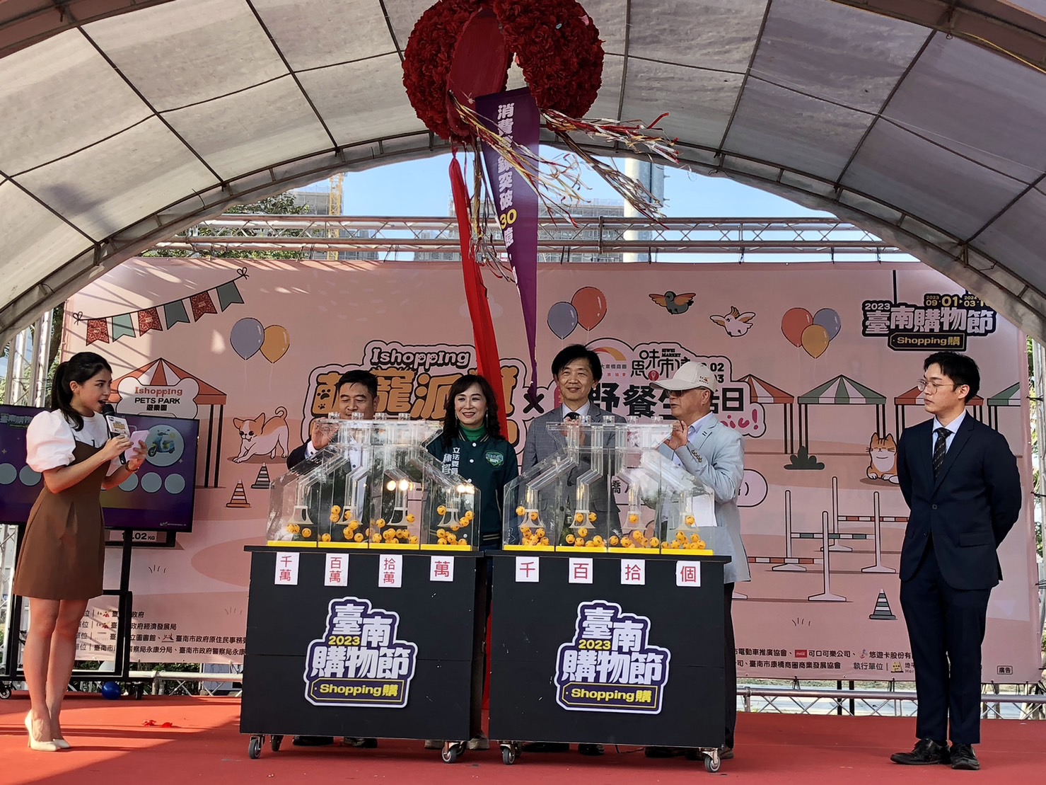 臺南市政府在臺南市立圖書館新總館舉辦臺南購物節iShopping萌寵派對暨月月抽-開幕記者會活動。(台南市政府提供)