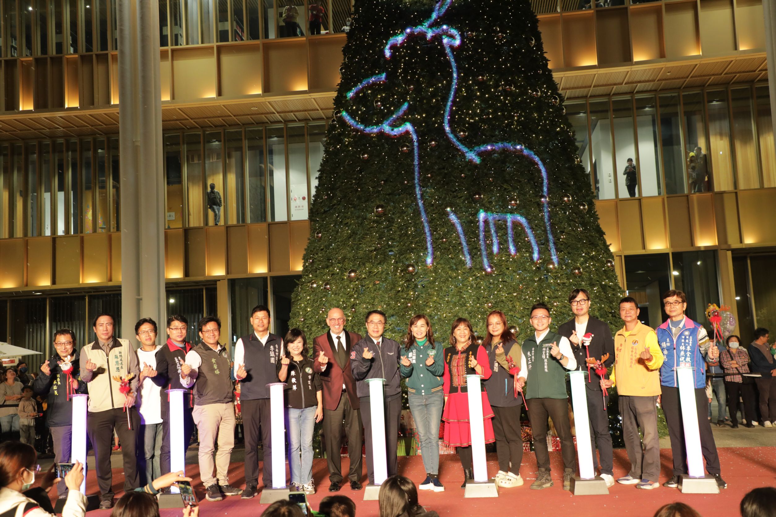 市長黃偉哲表示,在永康總圖前舉辦的聖誕點燈已經成為台南市民最期待的聖誕慶典之一,今天現場民眾參與熱烈,不少人全家出動來現場感受聖誕節的幸福氣氛,藉著今天點燈的機會,他要祝福所有市民在佳節平平安安、幸福美滿。