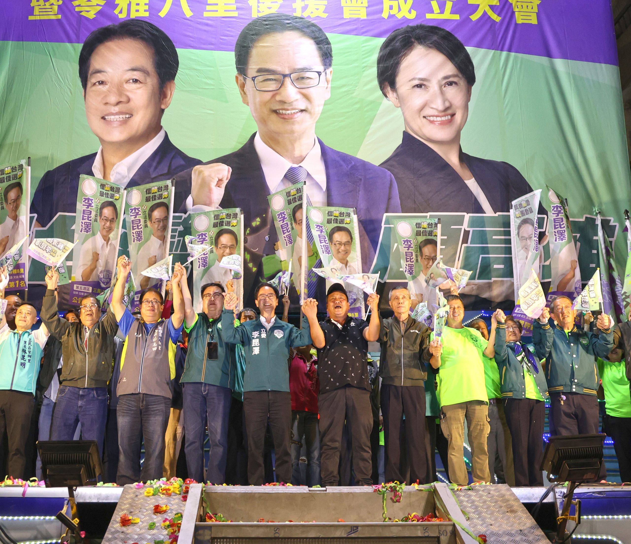 立委李昆澤舉辦三民東區暨苓雅八里後援會成立晚會,現場超過4000人爆場相挺。(立委李昆澤競總提供)