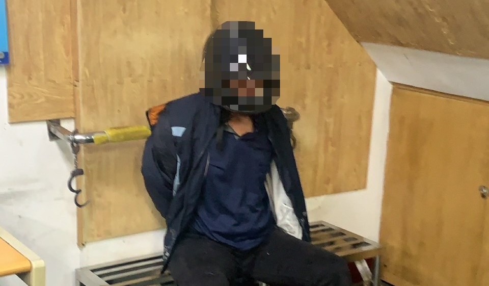 警方上銬逮捕何嫌。(高雄市小港警分局提供)