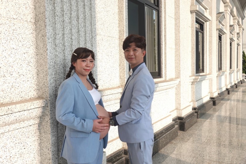 議會戶外迴廊今日出現一對佳人前來拍攝孕婦寫真。(記者翻攝)