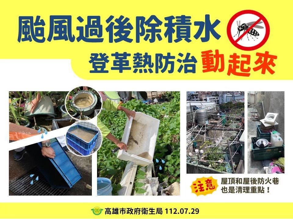 登革熱病媒蚊包括埃及斑蚊與白線斑蚊,尤其南部地區埃及斑蚊傳播力高,除室外環境,室內瓶罐積水容器,亦容易孳生病媒蚊,也務必留意;隨著雨季來臨,防治上必須結合社區力量,雨後立即展開居家環境掃除,是重要的防疫策略。