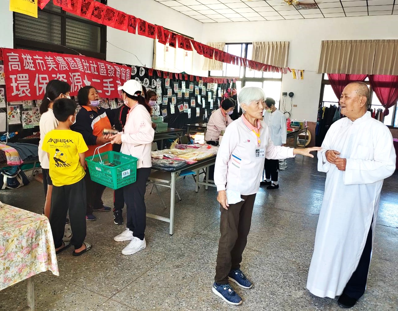 龍肚里長邱子軒、龍肚社區發展協會理事長劉蘭英軍在場為民服務,活動內容包括:1.改頭換面-義剪。2.惜物愛物-二手貨市集。3.除舊推拿。4.佈新-里長壽司贈送。5.祈福法會-禮佛祈福得吉祥賜福闔家健康平安。