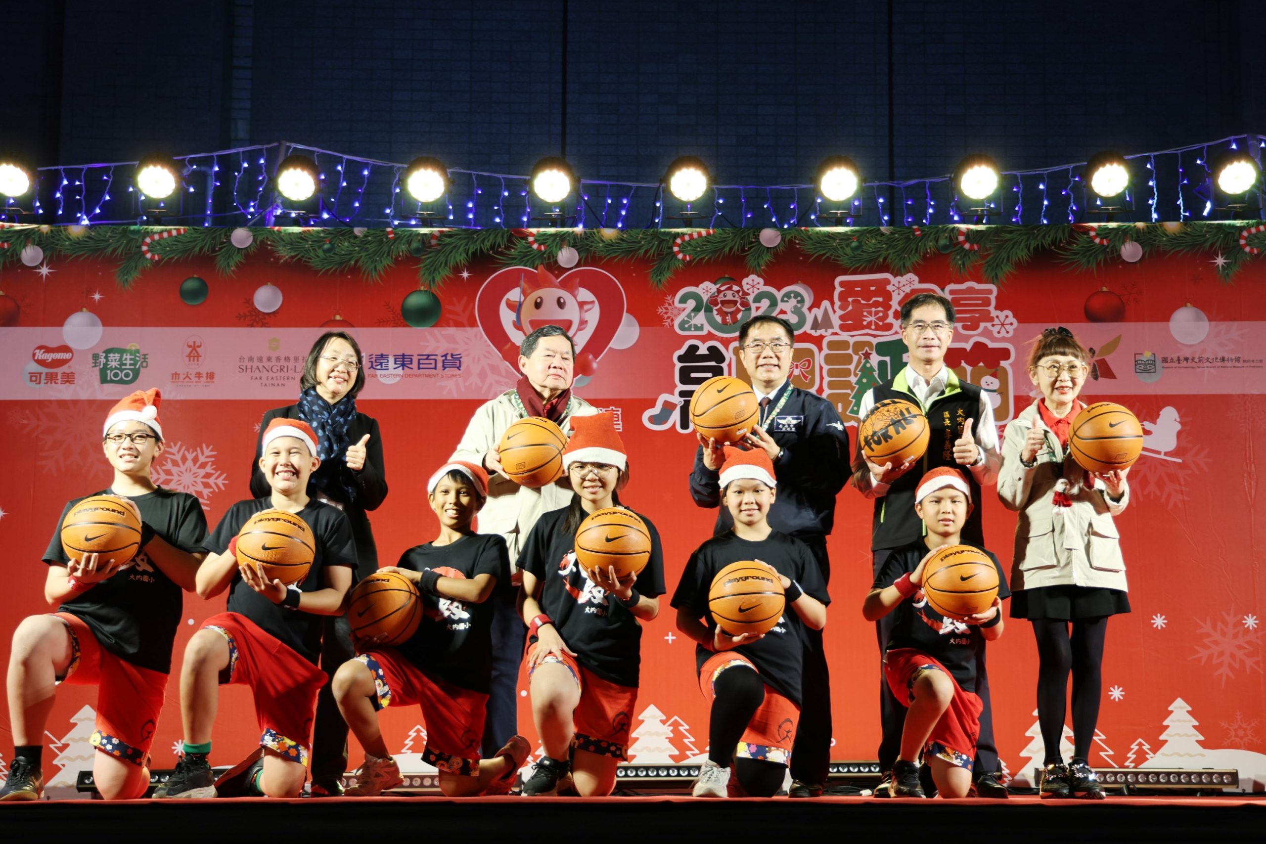 聖誕節即將來臨,臺南大遠百今(9)天晚上舉辦「2023愛分享」愛的聖誕節點燈公益活動,將戶外廣場聖誕樹正式點亮,並贈送運動鞋給10所臺南市偏鄉國小學童,臺南市長黃偉哲、遠東集團董事長徐旭東、總經理徐雪芳及市議員蔡筱薇共同參與,市府也捐贈200顆籃球給臺南市偏鄉關懷學童,希望帶給學童滿滿的溫暖與祝福。