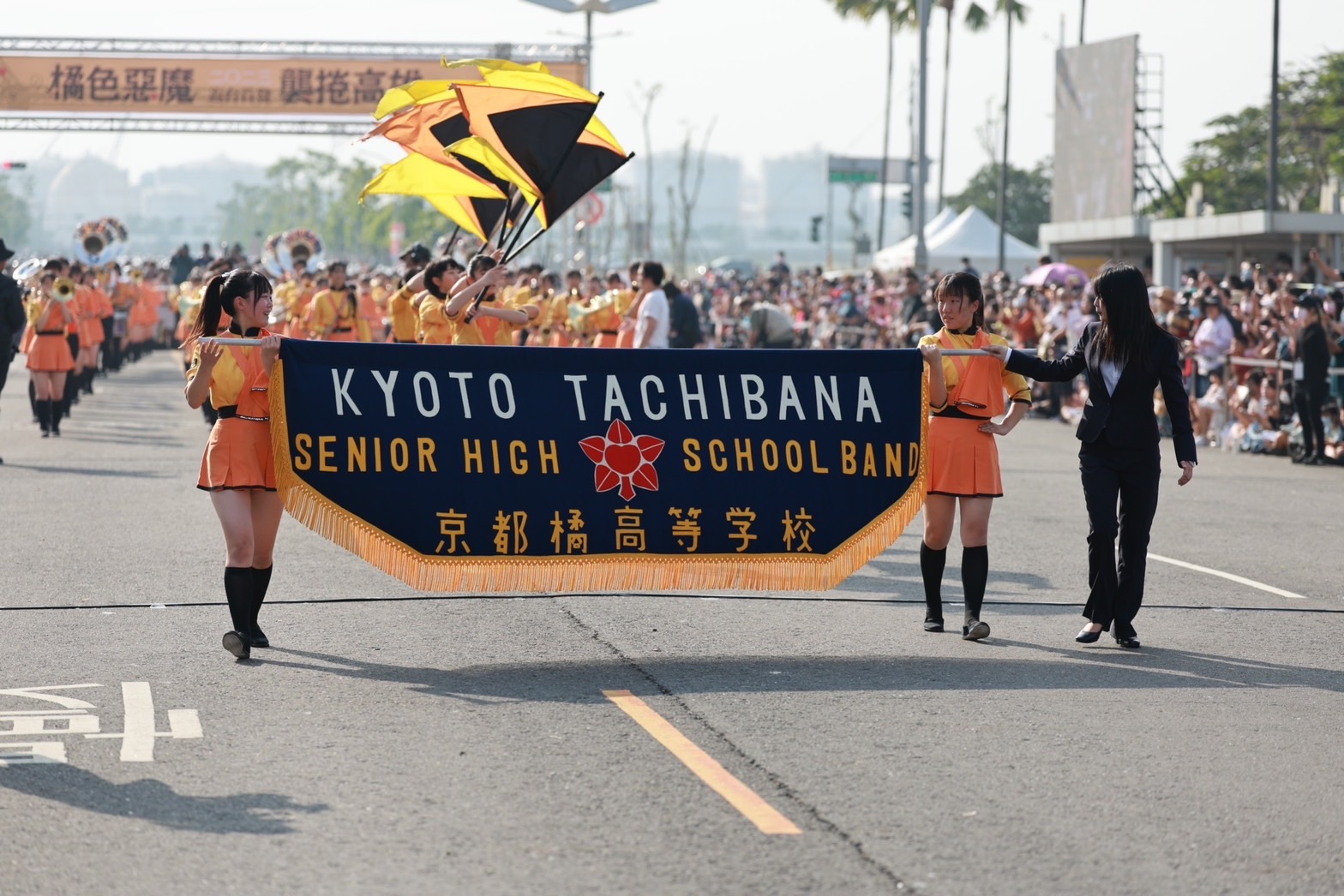 (記者黃思慈報導)「橘色惡魔襲捲高雄」日本超高人氣的行進樂隊京都橘高校吹奏樂部今(10)日下午在高雄時代大道進行2023年返台首場演出!時代大道表演現場、大螢幕轉播第二現場皆擠滿觀賞人潮,網路直播也吸引全台民眾同步觀看。