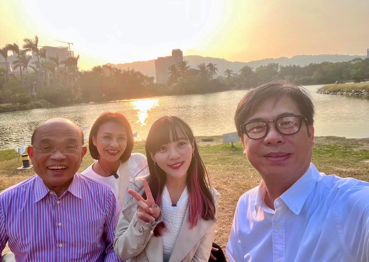 (記者李麗華報導)大選進入倒數29天的衝刺階段,民進黨高雄市第六選區立委候選人黃捷po出與前行政院長蘇貞昌、高雄市長陳其邁、立委邱議瑩在美術館湖畔旁的自拍照,寫下:「蘇院長說高雄越來越美了!傍晚時分,美術館湖畔超美」,而蘇貞昌、陳其邁也在社群公布四人騎腳踏車的合照,陳臉書文字寫:「我們就是為了這一個個平凡美麗的日常,繼續努力著。」看得出來三人的合體默契。