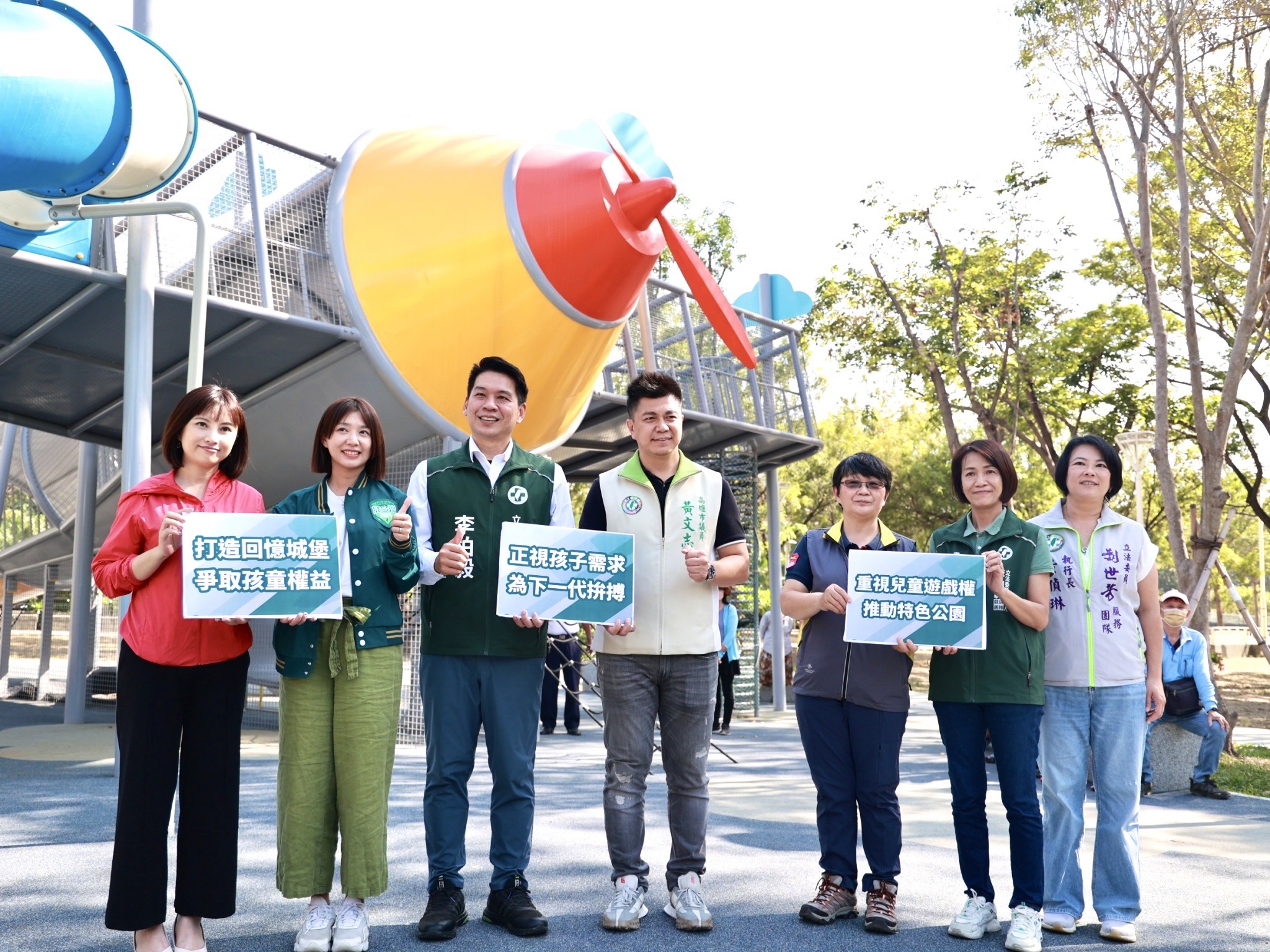 民進黨左營楠梓區立委候選人李柏毅與不分區立委候選人張雅琳、黃文志議員、李雅慧議員,今日舉辦「打造回憶城堡,爭取孩童權益」記者會,希望喚起政府與社會對兒童權益的重視,正視孩子們遊憩遊戲需求與成長環境。
