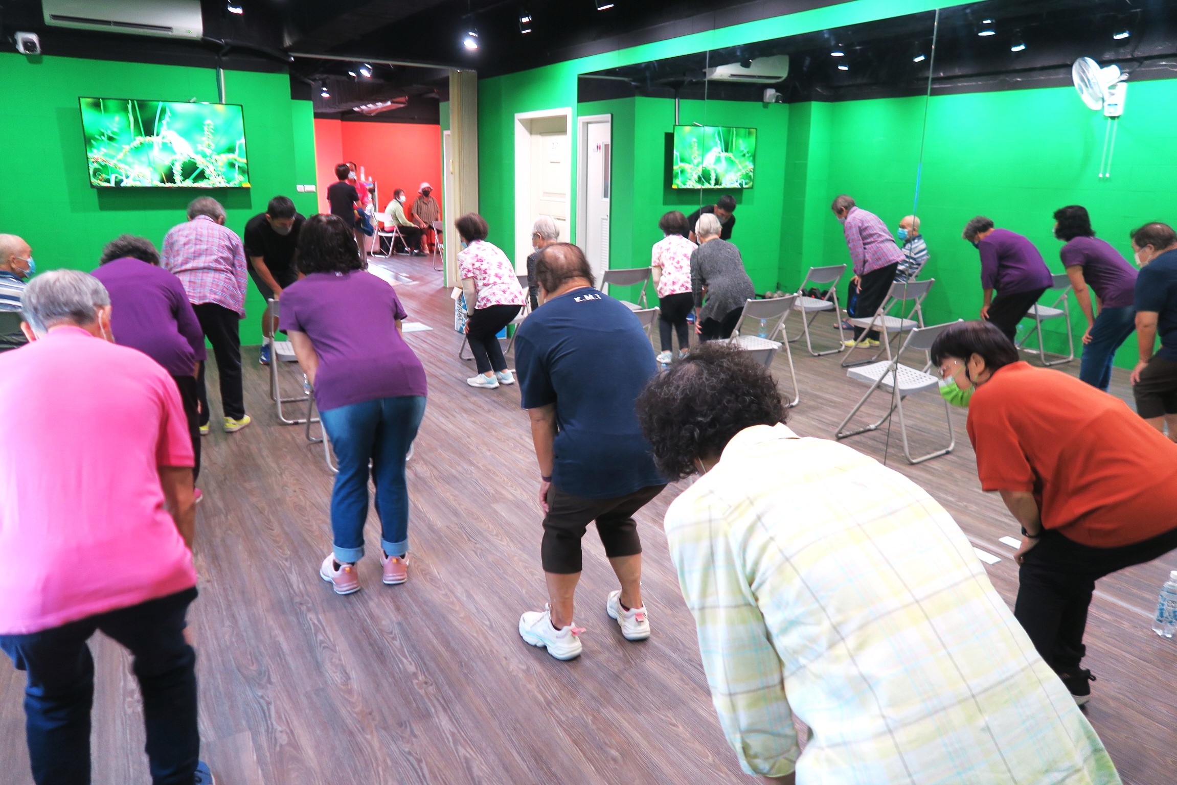 圖說 旗山聖星診所舉辦「聖星銀髮健康健身俱樂部」發表會,劉鈞華博士指導長輩做健身操,復健師饒惠雯為長輩做健身系列簡報。 (黃山高攝)
