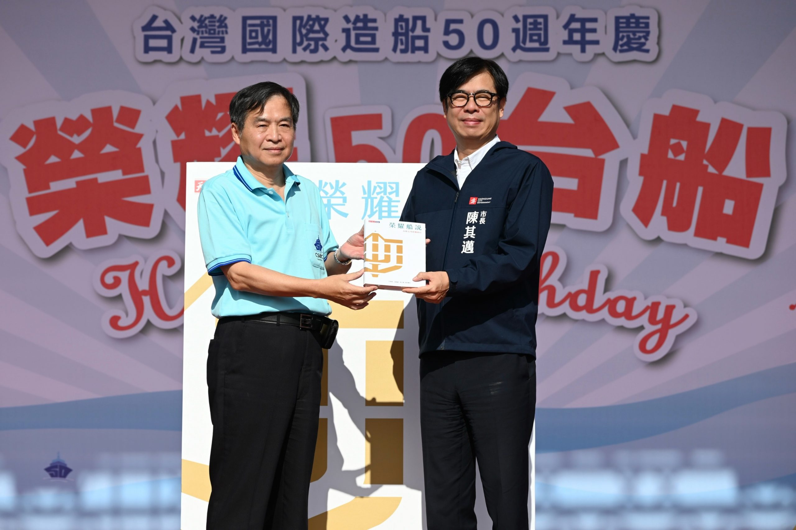 台船公司今(16)日歡慶成立50週年,高雄市長陳其邁、立委賴瑞隆出席慶祝儀式。(高雄市政府提供)