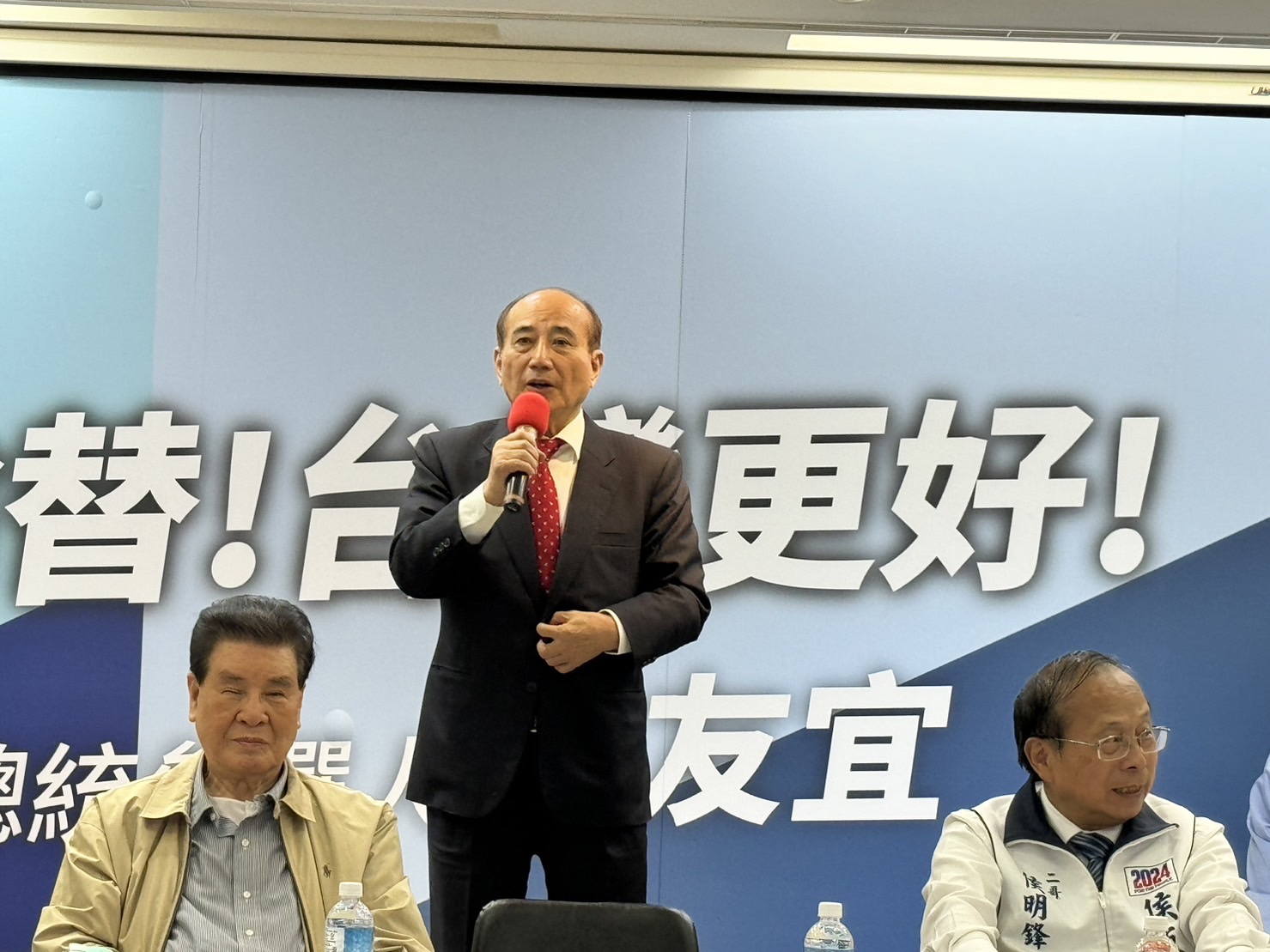 前立法院長、身兼侯友宜全國後援總會總會長王金平,今下午於國民黨高雄市黨部六樓,親自召開主持「第16任總統及立委選戰輔選工作會報」,召集包含現卸里長、鄉長、議員、立委等人參加,前議長、侯友宜高雄競總主委莊啟旺、侯友宜二哥、高醫前院長侯明鋒、高雄農會理事長蕭漢俊、台灣螺絲公會理事長蔡圖晉等均出席力挺參加,並共同高喊侯康凍蒜、立委全壘打展現國民黨大團結氣勢。