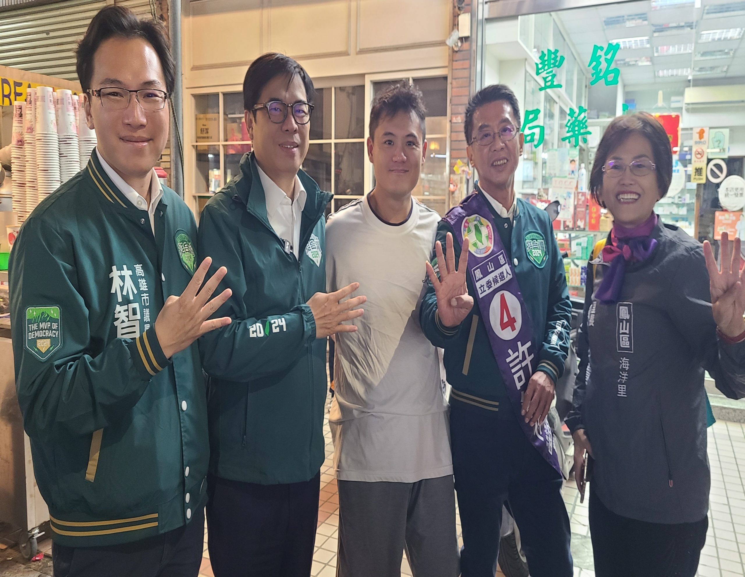 高雄最強母雞市長陳其邁近日行程滿檔,特地陪同立委候選人許智傑來到鳳山海洋夜市掃街拜票。(許智傑競辦提供)
