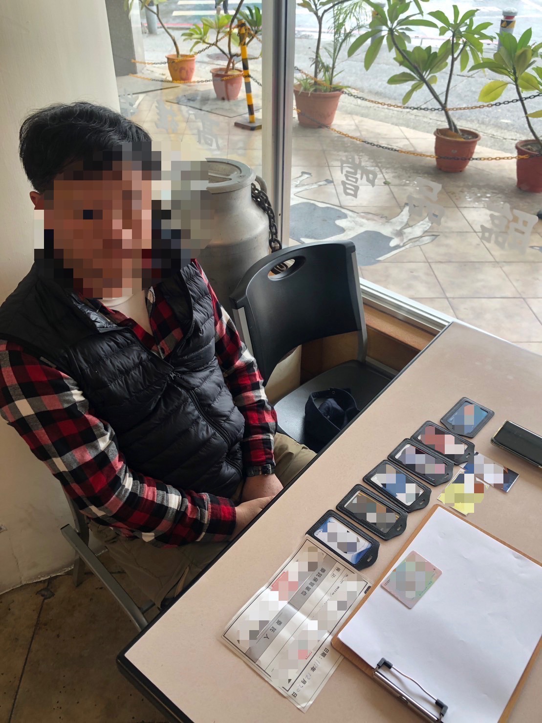 在員警耐心解釋後,蔡婦才發現一切都是詐騙集團捏造出來的謊言,隨後員警與蔡婦研擬對策,並約對方在12月20日上午在指定處所收款;查緝小組部署警力後,香港籍的詐欺黃姓車手(51歲,男性)如期至該處所取款,隨即被優勢警力逮捕控制,並在身上起獲偽造股票操作收據、工作證等證物。