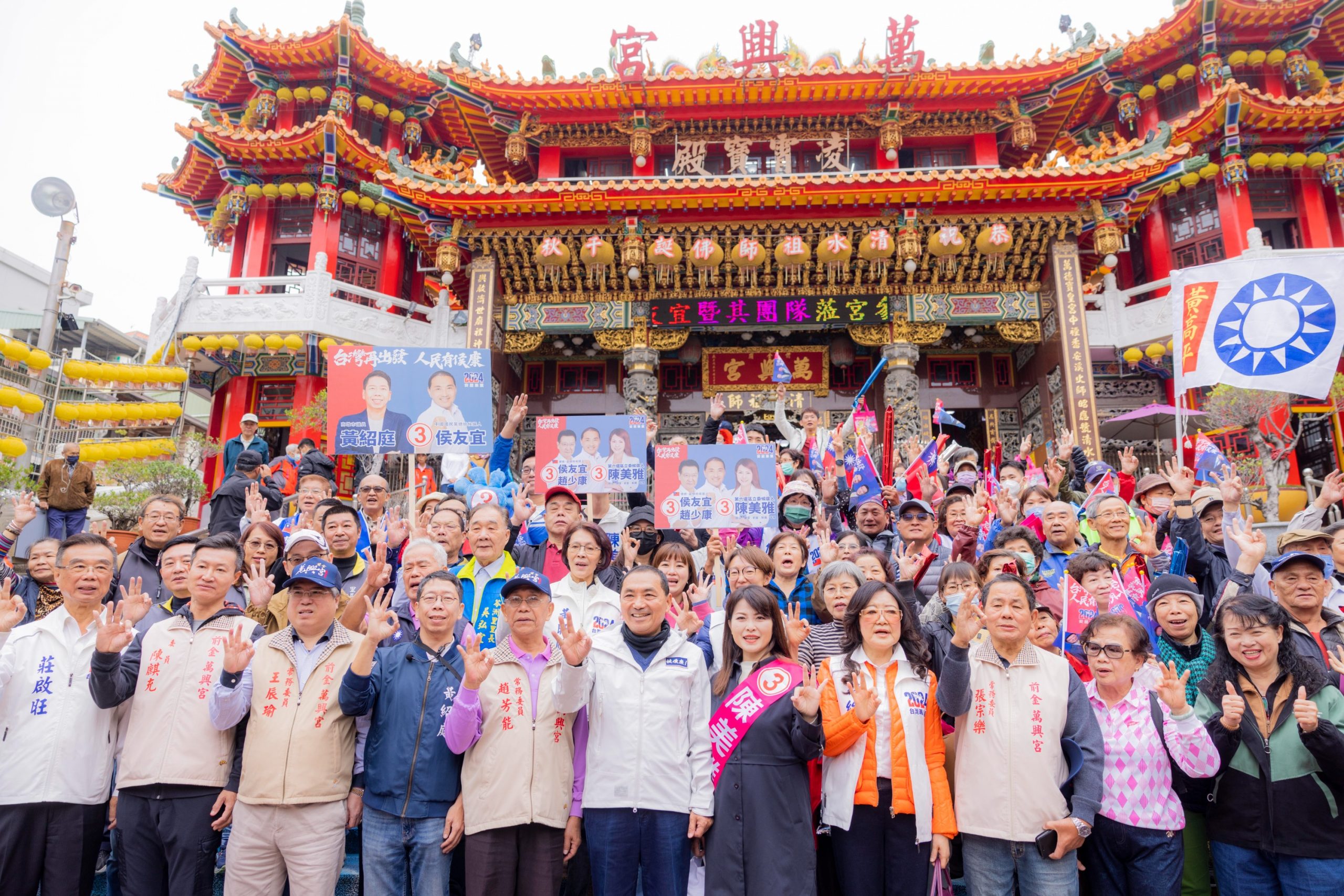 侯友宜今一早與立委候選人李眉蓁參拜高雄新莊天后宮、新庄仔天公廟,接著與立委候選人黃柏霖參拜三鳳宮、玉皇宮,隨後與立委候選人陳美雅參拜萬興宮,並於前金、苓雅、鹽埕、鼓山等地區車隊掃街,沿路受到民眾熱烈歡迎,許多駕駛也搖下車窗高喊加油,還有在店面、家中的民眾,熱情跑到路旁對車隊比出三號OK手勢,在苓雅區更出現長達200公尺的人龍迎接車隊,手揮旗幟、高喊凍蒜。