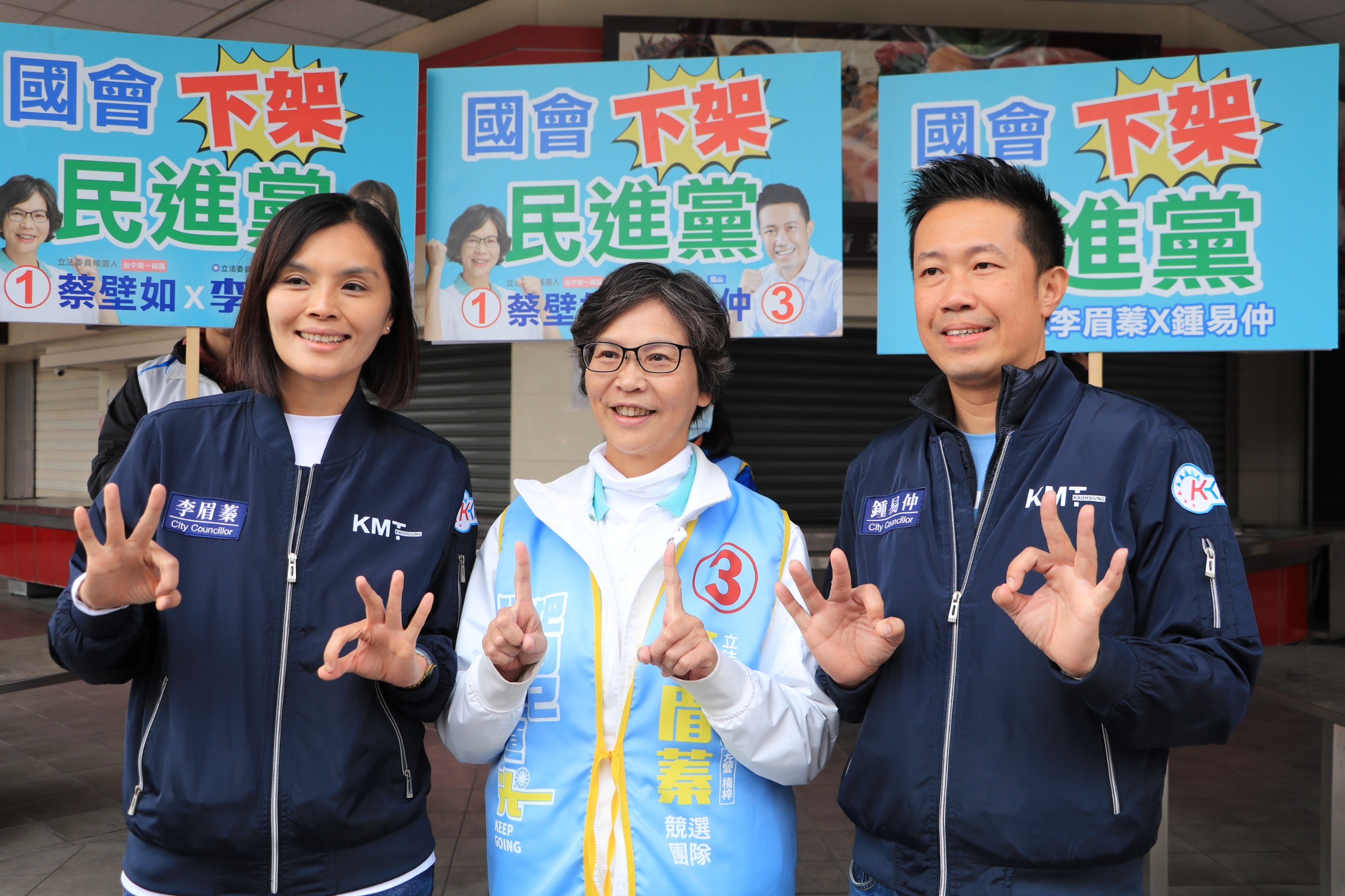 圖說-民眾黨立委候選人蔡壁如今(23)日從台中南下,為國民黨候選人李眉蓁、鍾易仲掃街站臺