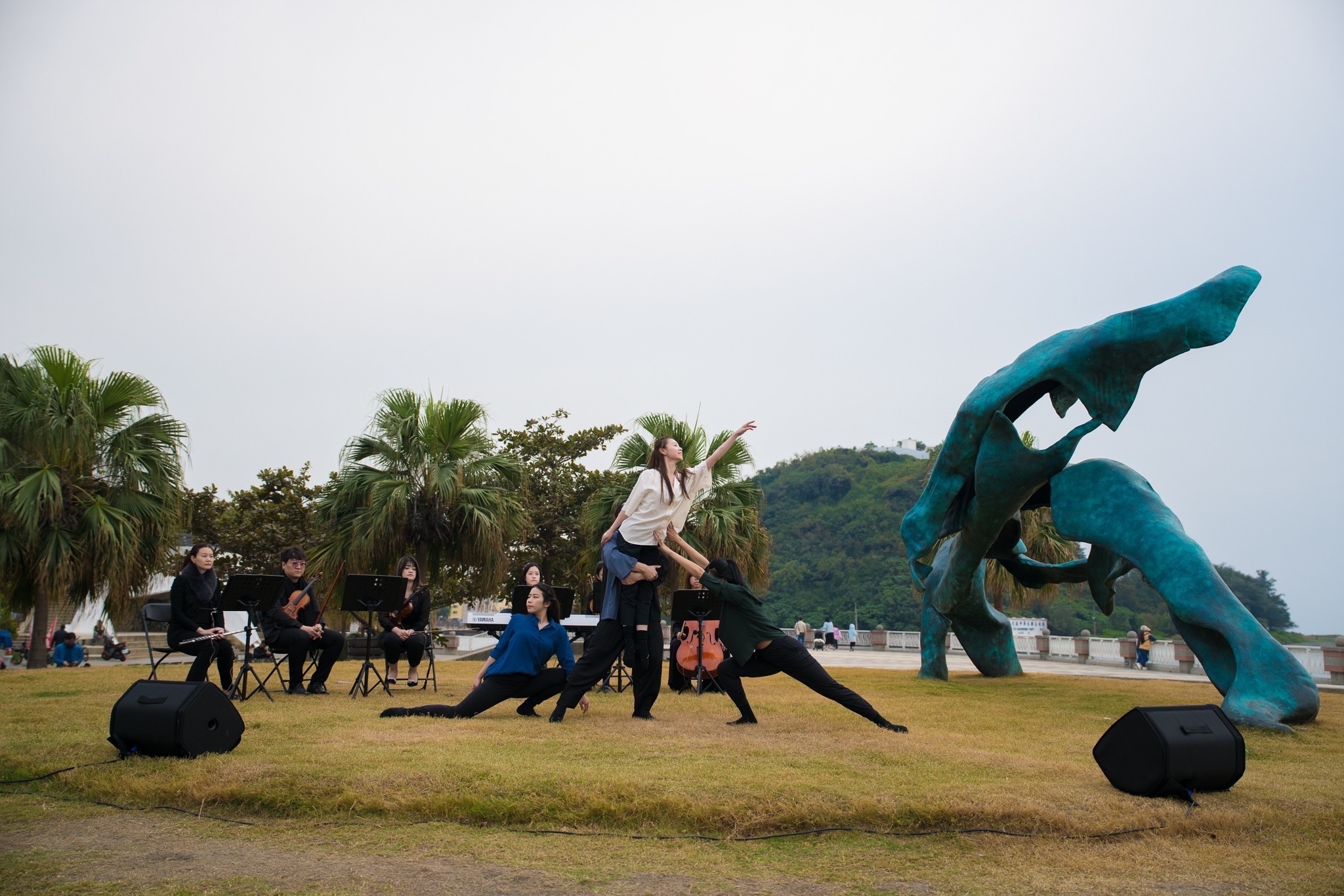 (記者李麗華報導)高雄西子灣除了遼闊的美麗海景和往來的船隻,最近更增添一座長達8公尺多、3公尺寬、高超過4公尺的大型公共藝術「海洋之舞」(C’est assez)。為將這座「全台離海最近」、大型青銅雕塑「海洋之舞」正式亮相,介紹給市民朋友,觀光局特別於耶誕夜前夕(23)日,在西子灣觀景台舉行海洋之舞感恩音樂會。