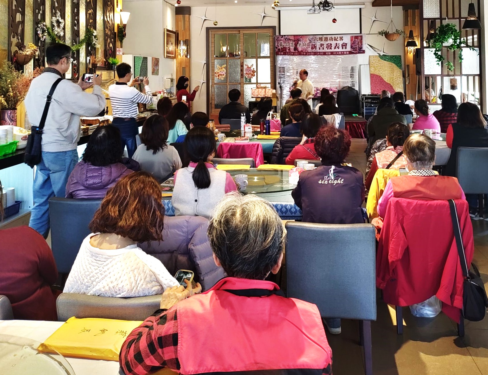 (記者黃山高/高雄報導)岡山大專青年協會創會40周年系列活動舉辦媒體作家第十一本書《六堆邀功紀略》新書發表簽書會,岡大會創會長蔣榮欽、總顧問蔡文章教授、成大台文所前系主任蔣為文教授、美濃龍山國小校長張二文、阿公店溪雜誌社長蔣榮福醫師、前立法院參事王耀德、高雄市客家青年藝文協會理事長曾淑琪率理監事和會員數十人與會,作者黃山高在岡大匯館展示《邀功紀略》及中研院影印本,還有其本人於1982年手抄本,會後曾淑琪理事長贈送捧花祝福圓滿成功。