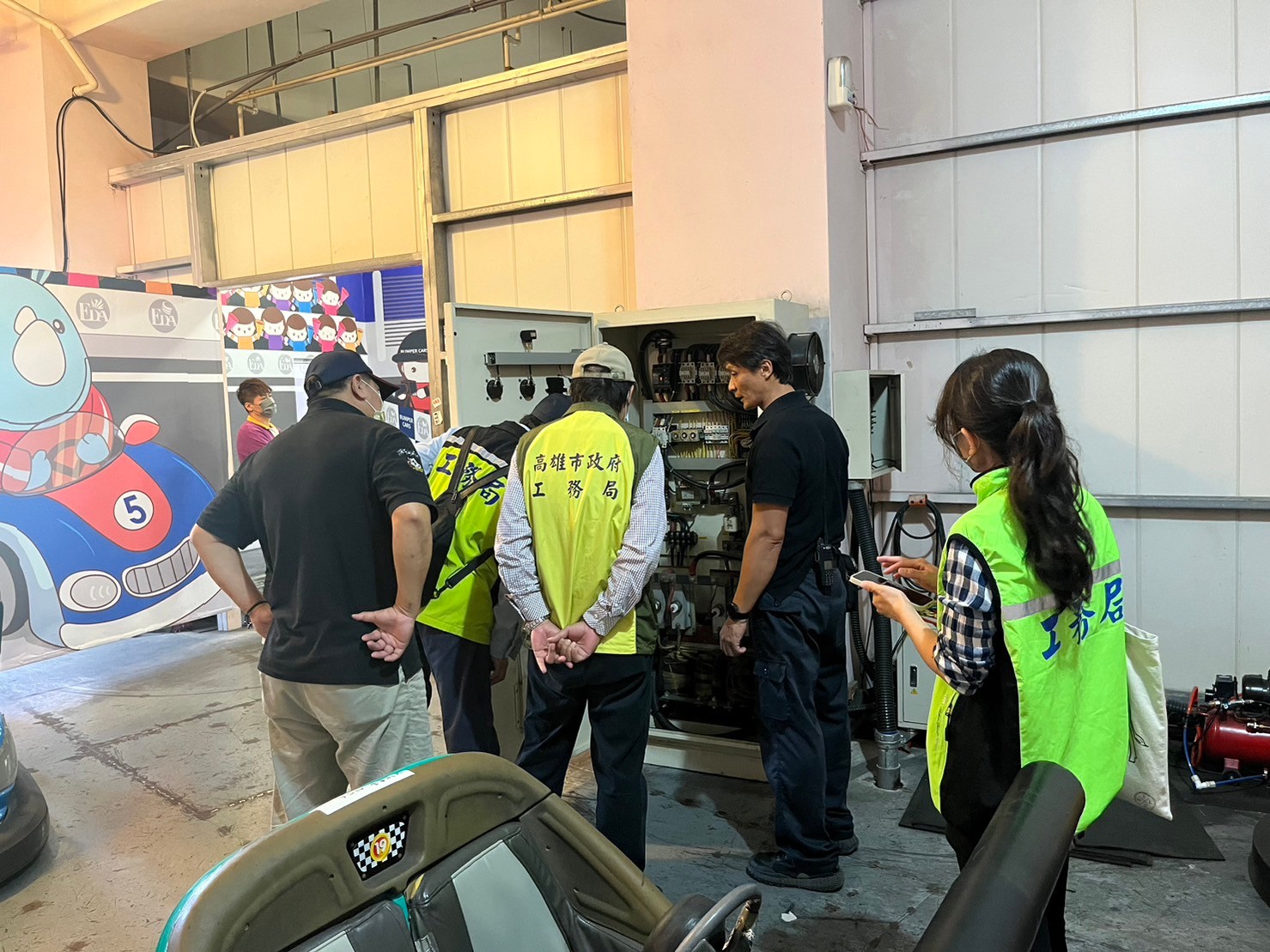 專業技師會勘,針對遊樂設施場所加強檢查。(高雄市政府提供)