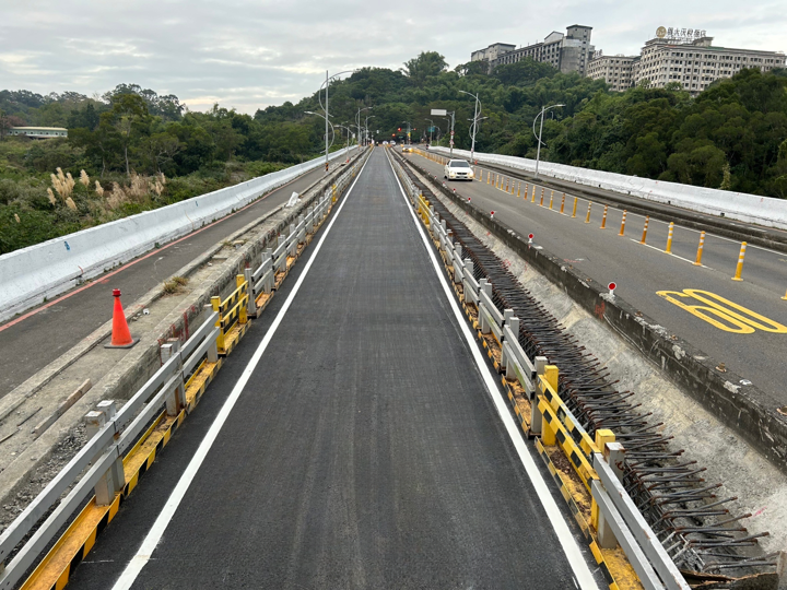 工務局新工處表示,在100年8月29日南瑪都颱風帶來豪雨,導致義大二路部份路面下陷,當時市府先以預力地錨對拉支撐擋土牆工法加速搶通,因地錨非長期性措施,因此市府除持續對道路安全監測外,並辦理路基改善工程,目前改善工程已在今年8月10日開工,並封閉南下車道,及利用北上快車道維持南北雙向1車道,為配合今年跨年活動,經與各管線單位協調縮短施工期程,加速於日前先完成AC臨時鋪設,並開放南下快車道1車道寬(約3.5米)臨時性通車,整體道路改善工程預計114年1月完工。
