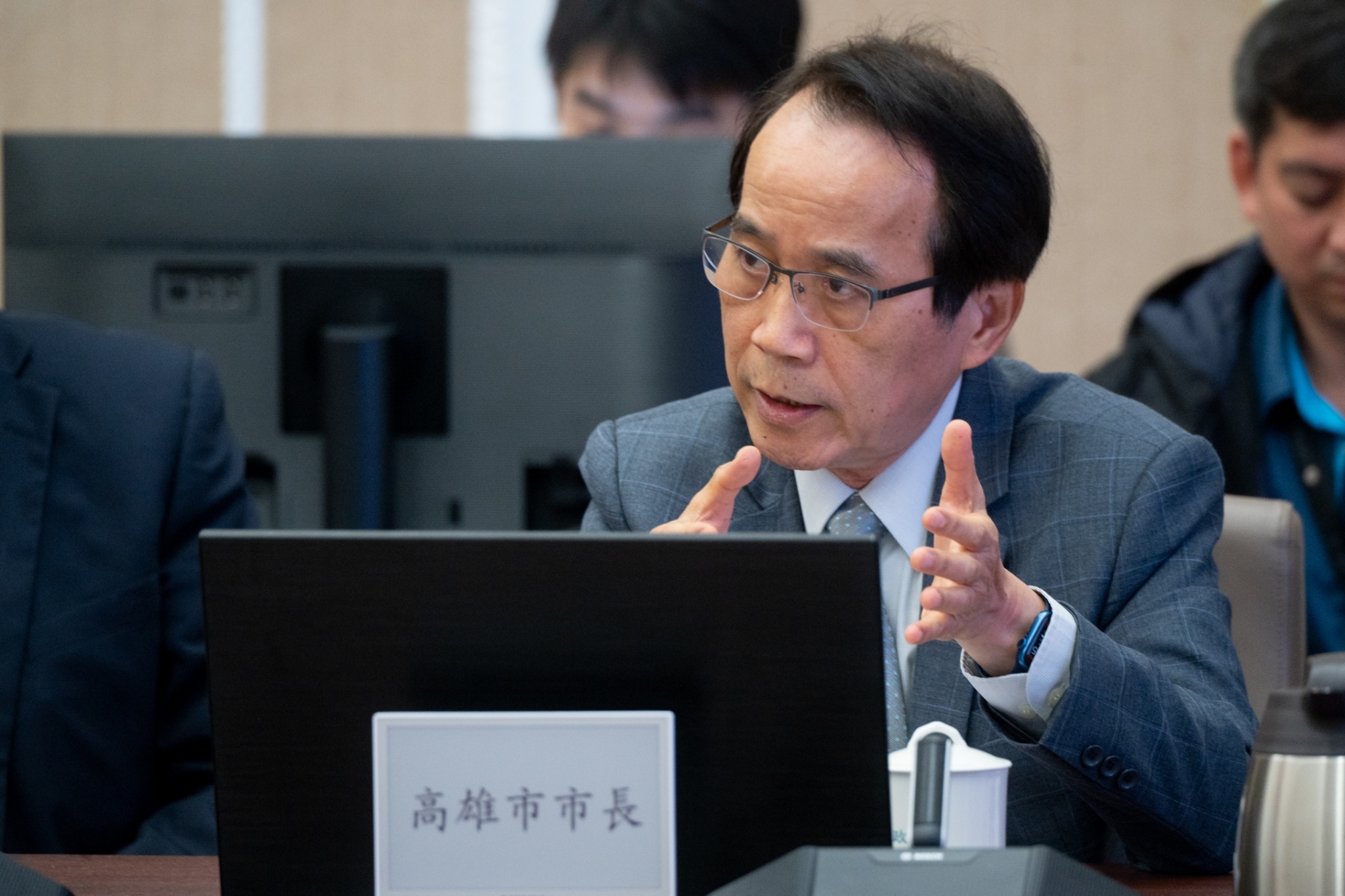 高雄副市長林欽榮於行政院會分享高市學生霸凌申訴機制。(高雄市政府提供)