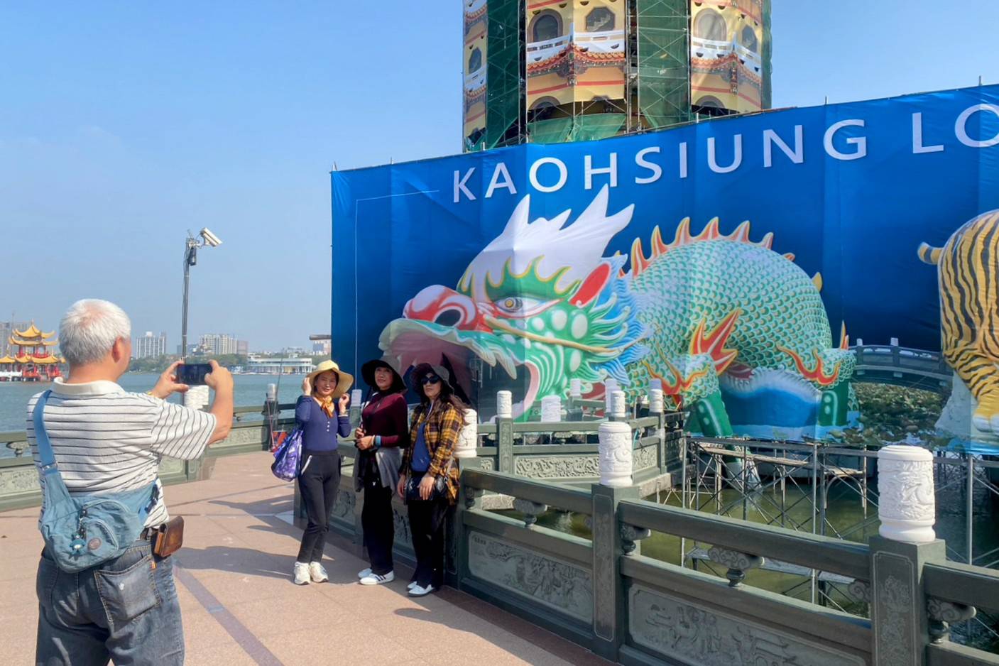(記者李麗華報導)龍虎塔位於蓮池潭畔,龍虎造型栩栩如生,深受國際旅客喜愛,塔身自去年6月整修以來周圍被鷹架綠色防塵網遮住,遊客未免有難以一見龍虎塔的遺憾。高雄市政府觀光局局長高閔琳表示,為免長達一年施工期間影響遊客到訪拍照、打卡需求,觀光局參考歐美常見古蹟修復或建築工區美化做法;自1/3起,以龍虎塔一比一照片原圖輸出施掛於塔上及龍虎塔入口,針對施工工區進行美化,同也將設有中英日三國語言之導覽解說故事牆及最佳拍攝角度,服務國際觀光客。此外,111年12月26日蓮池潭經交通部公告為指定觀光地區,期待未來進一步帶動民宿開放、招商引資,結合舊城街巷人文古蹟、現有豐富水域活動發展。