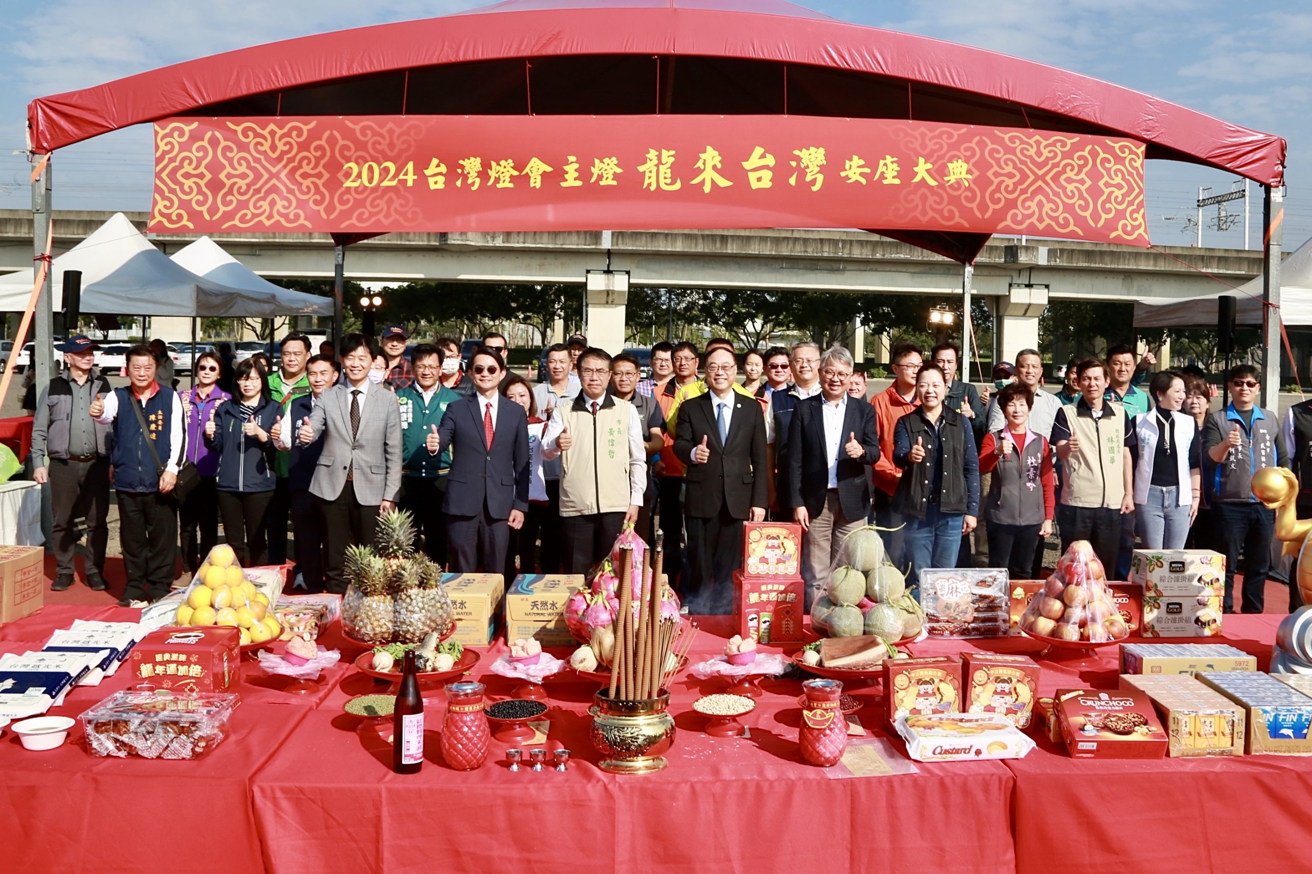 黃偉哲表示,很開心台南市睽違16年後再一次舉辦台灣燈會,活動開展在即,他抱著辦喜事的心情參與今日「龍來台灣」的安座典禮,祈求活動一切圓滿,也感謝交通部觀光署、文化部、交通部在各方面給予台南市政府協助,讓2024台灣燈會的工作循序漸進,進展順利。
