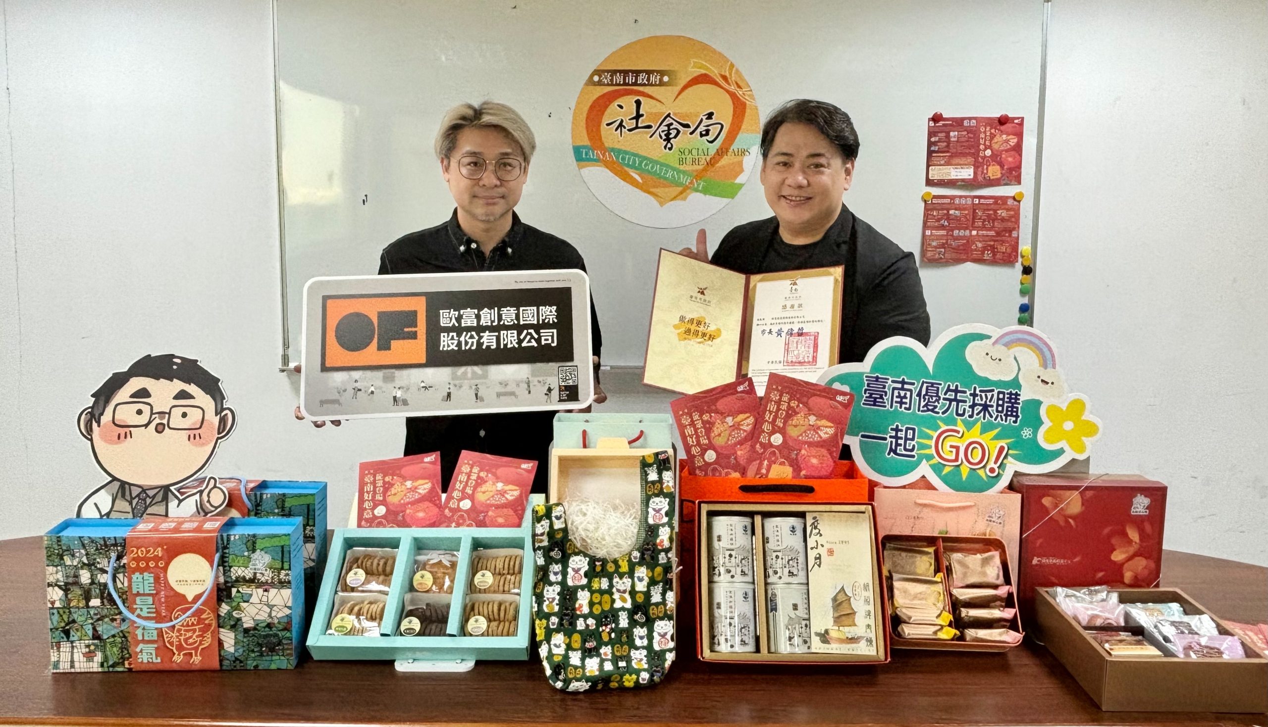 【記者李文賓報導】年節將至,臺南市政府社會局為協助社團法人台南市心智障礙關顧協會附設展翼烘焙坊、財團法人私立天主教瑞復益智中心、財團法人喜憨兒社會福利基金會、財團法人台灣省私立鴻佳啟能庇護中心、衛生福利部嘉南療養院等5家符合優先採購資格的身心障礙機構團體推廣春節禮盒,結合歐富創意國際有限公司無償設計印製產品單張,另由台南東南扶輪社贊助度小月超彭湃肉燥禮盒35盒作為滿額贈禮,黃偉哲市長表示希藉此公私協力,刺激買氣為身心障礙機構團體注入暖意。