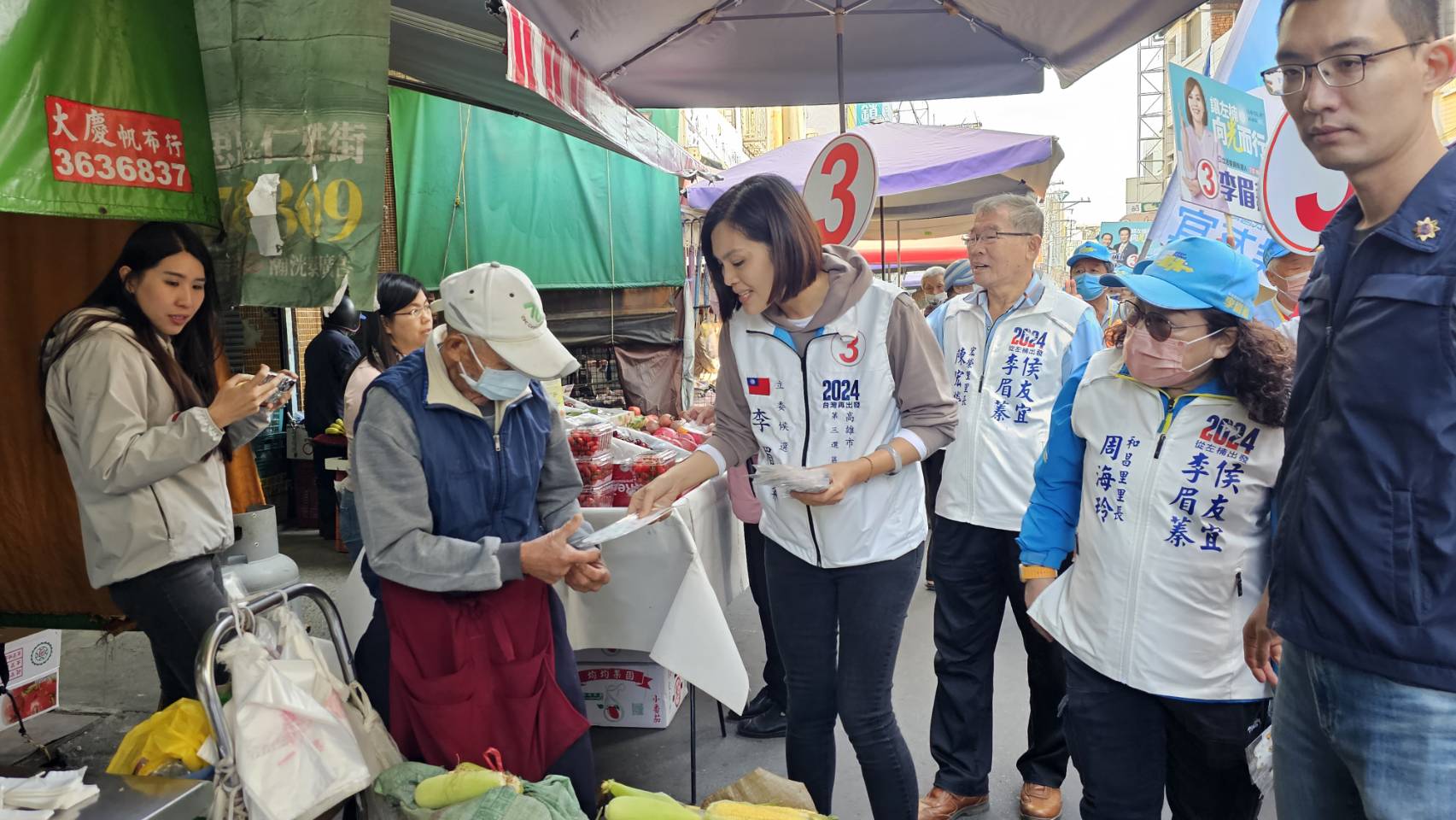 李眉蓁到莒光市場掃街拜票。(記者翻攝)