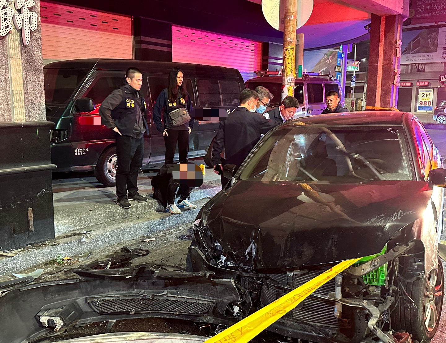 警方表示,自小客車20歲駕駛吳男與另一部自小客車24歲駕駛徐男因行車糾紛致追逐至仁武區仁雄路段,車速過快發生碰撞致前方車失控追撞工地、後方車自撞電線桿。