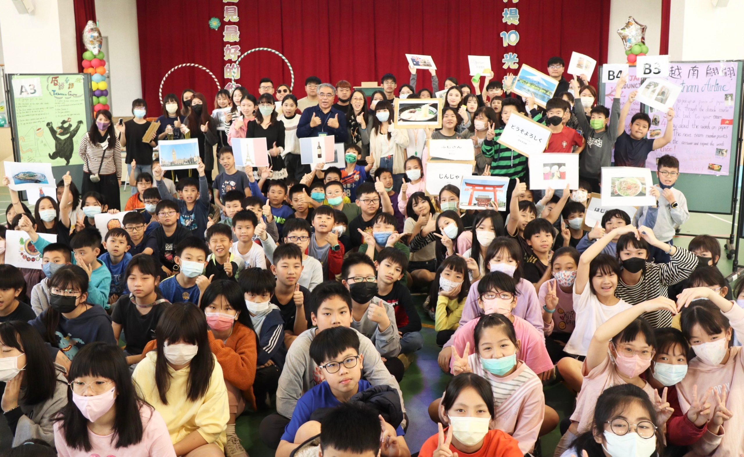河堤國小與文藻外語大學合作國際教育週活動邁向第八年,今年透過學習計畫認識各國最具代表性的圖像(icons)與問候語(greetings)為主軸,設計動態競賽活動,提升學生的學習興趣及參與度。