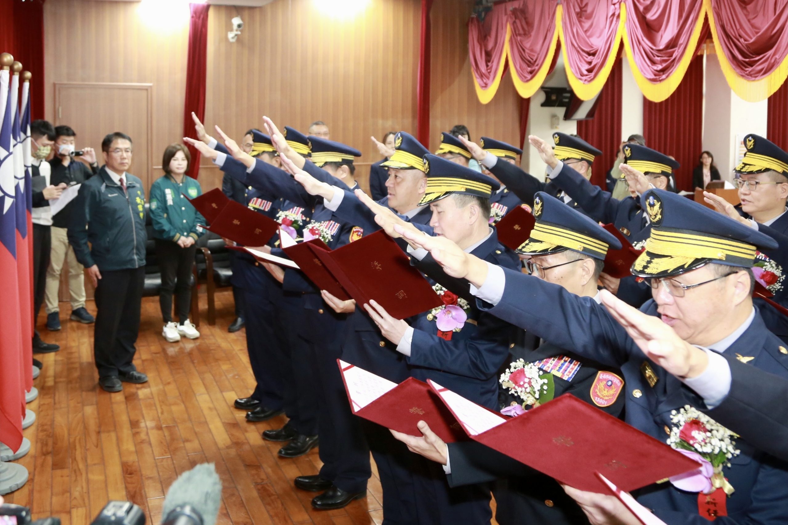 【記者黃思慈/臺南報導】為配合內政部警政署發布高階警職人事異動,彰顯並賦予新任分局長、大隊長及隊長維護社會治安及交通之重要責任,台南市政府於今(17)日上午9時隆重舉行聯合交接典禮,由市長黃偉哲主持佈達及宣誓儀式,本市多位民意代表等貴賓到場觀禮,典禮莊嚴隆重。
