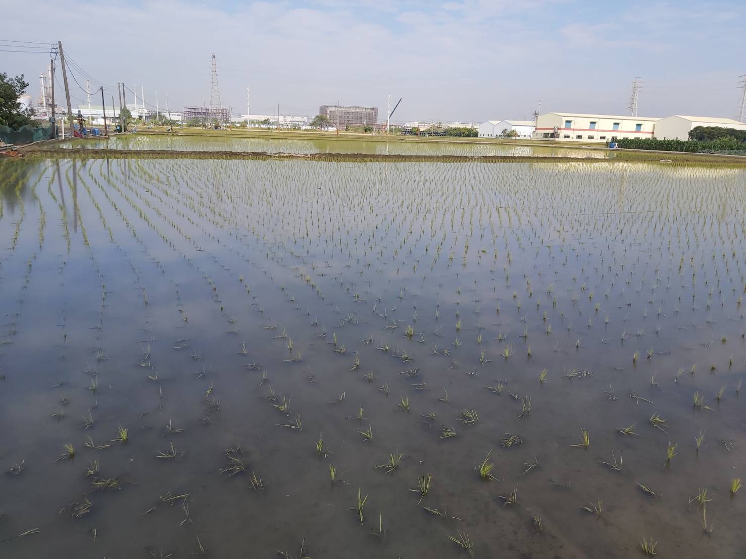 水稻田灌水減少低溫影響。(高雄市政府農業局提供)