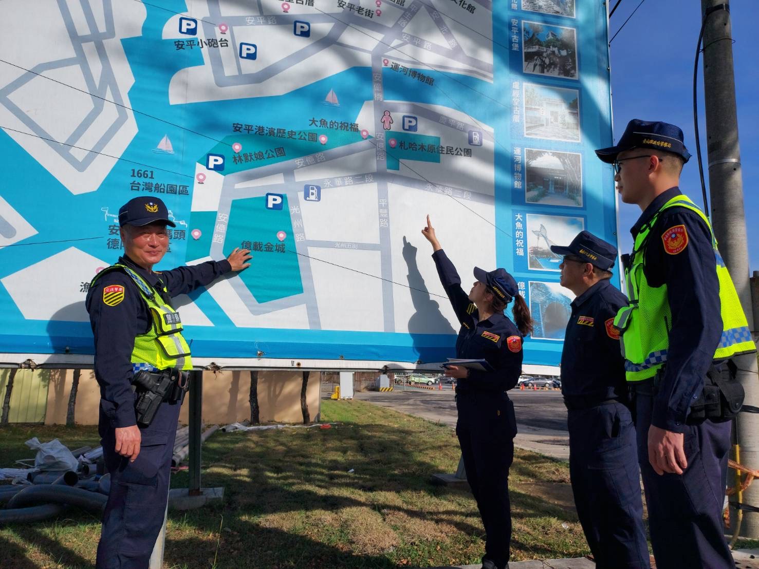 預期「2024台灣燈會」活動期間必定參訪旅遊的人車增多,為了提高交通資訊,警方於本週針對安平觀光景點附近和緯路、民權路、安北路、安平路等交通動線實際勘查,期待達到順暢和安全;警方前往燈會活動規劃之聯外動線巡查,未來「2024台灣燈會」活動交通資訊,也將運用「警察廣播電台」提前引導遊客停車於外圍停車場,觀夕平台停車區、健康路與市府週邊停車區、周邊既有停車空間,同時提供交通資訊給遊客,可透過國1及國3轉接國8、台86、台17乙及台17等引導路線至停車場,使安平燈區私人運具聯外動線達到順暢目的。